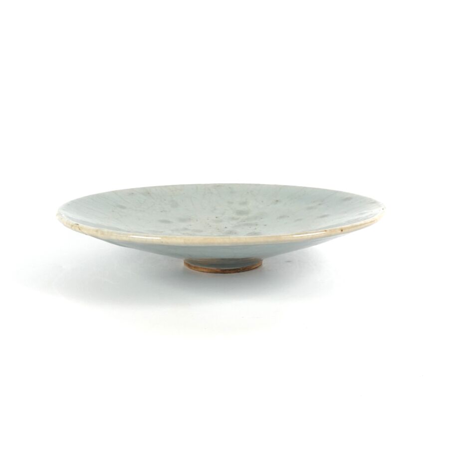 Coupe en grès émaillé céladon bleuté, Chine, 19ème siècle, H. 5.3 cm. Diam. 26.6 cm (craquelures, petits défauts de cuisson).