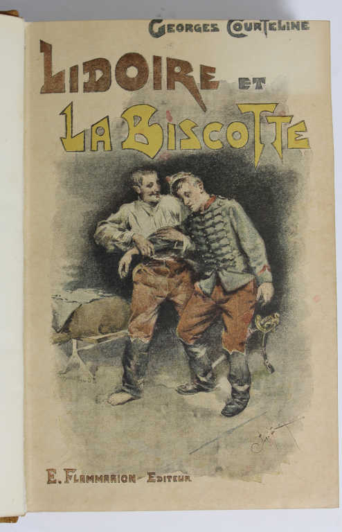 COURTELINE (Georges) - Lidoire et la biscotte - Paris ; Lib. Marpon & Flammarion, E. Flammarion, sans date - 1 volume In-12° - Couvertures et dos conservés (illustration couleurs au 1er plat) - Jolie reliure de l'époque demi-maroquin citron (signée Alfred Farez) - Dos lisse titré or (1 petite griffure et légèrement assombri) - Tête dorée - Bon exemplaire en édition originale.
