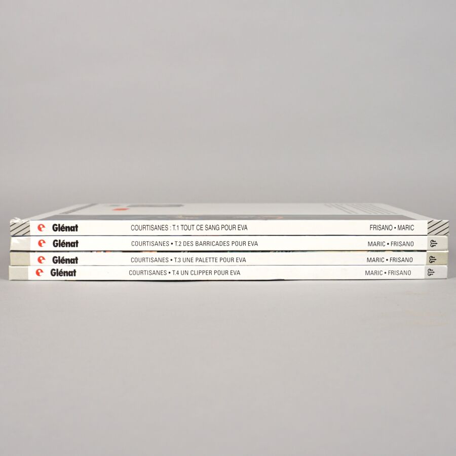 COURTISANES, éd. GLÉNAT, collection Vécu : Ensemble de 4 albums comprenant les tomes 1 à 4 (série complète). État moyen.
