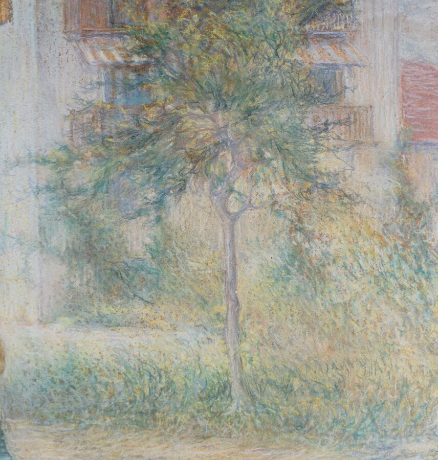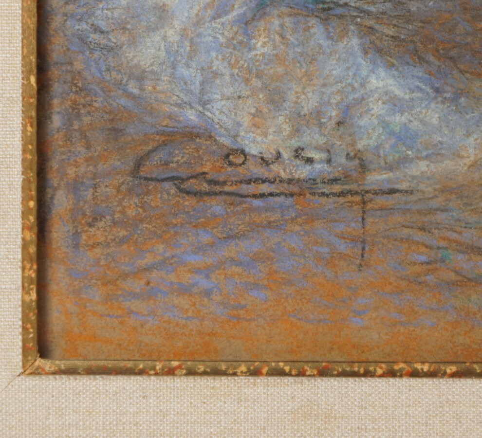 COUSIN (XXe), "Dentelière à l'ouvrage assise sur un banc", dessin au pastel sur toile, signé en bas à gauche, 64 x 80 cm.