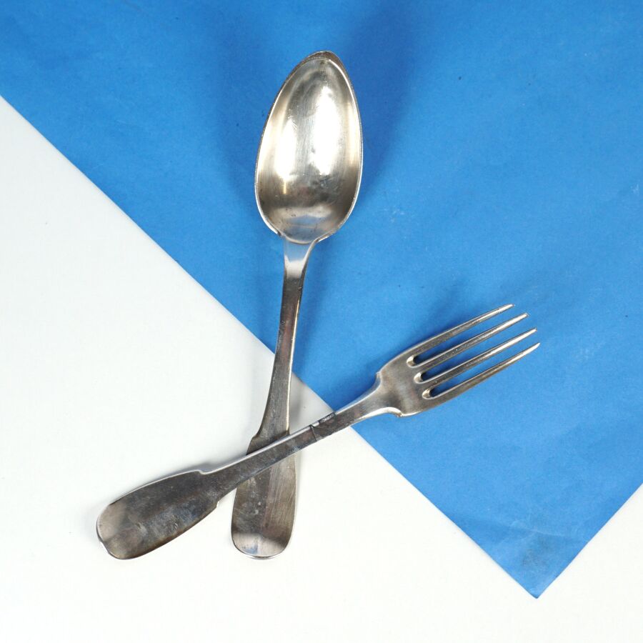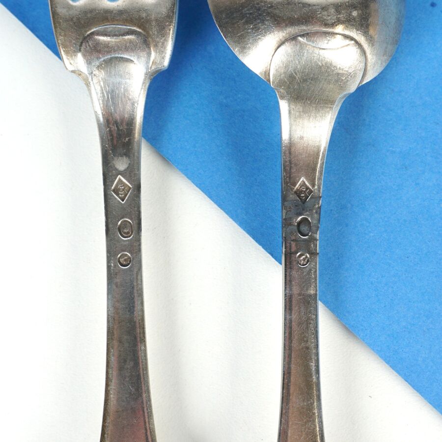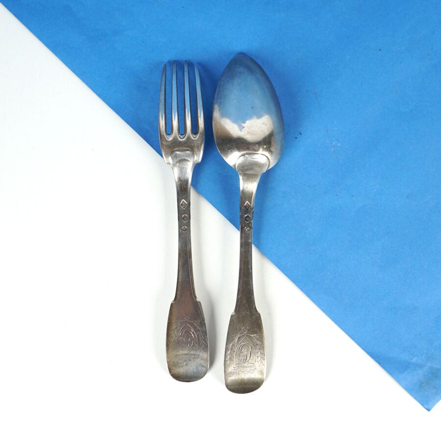 Couvert en argent, poinçon 2ème coq, 1er titre - Province, moyenne garantie, poinçon de MO "PD", modèle uniplat, L. 21 cm. Poids brut : 160 g environ.