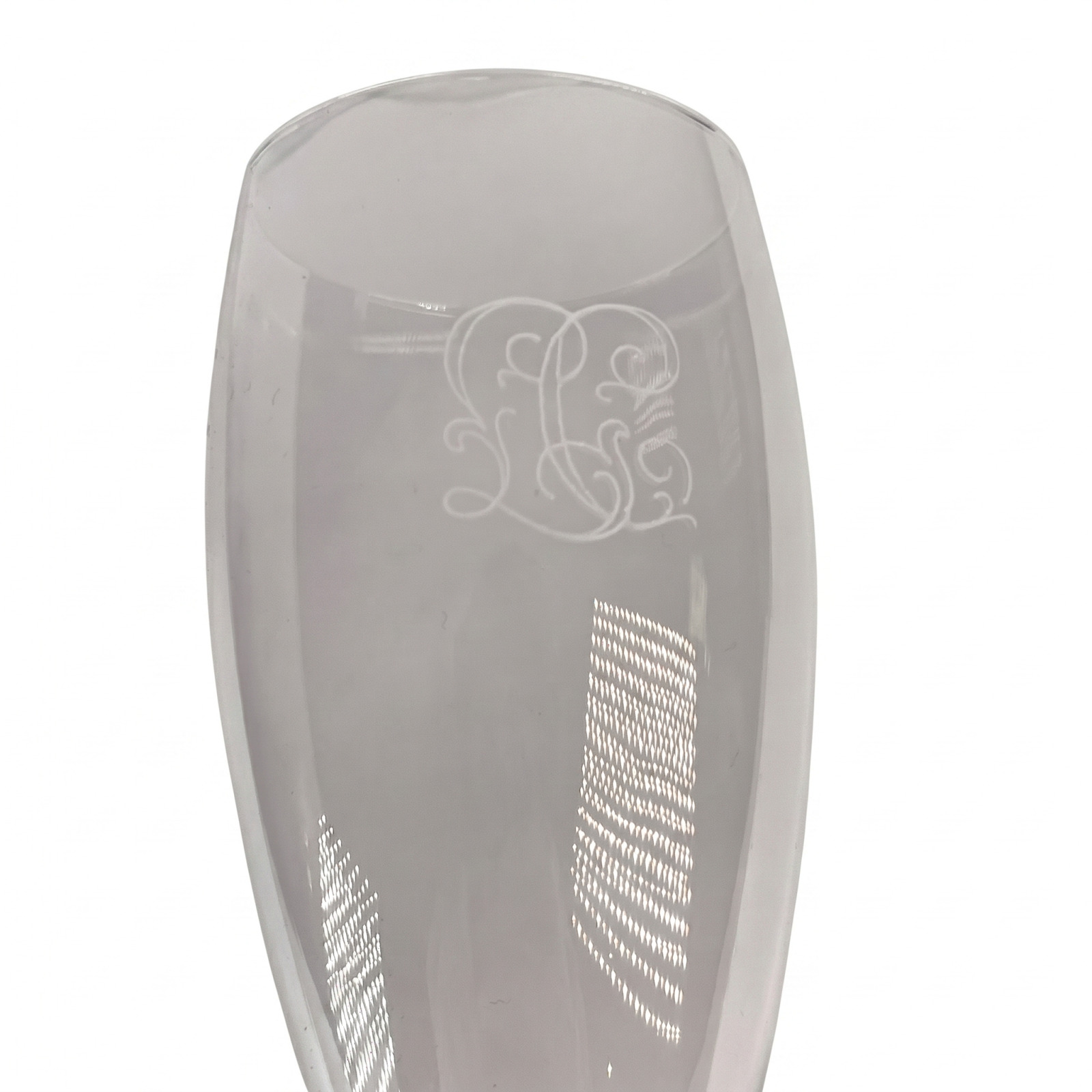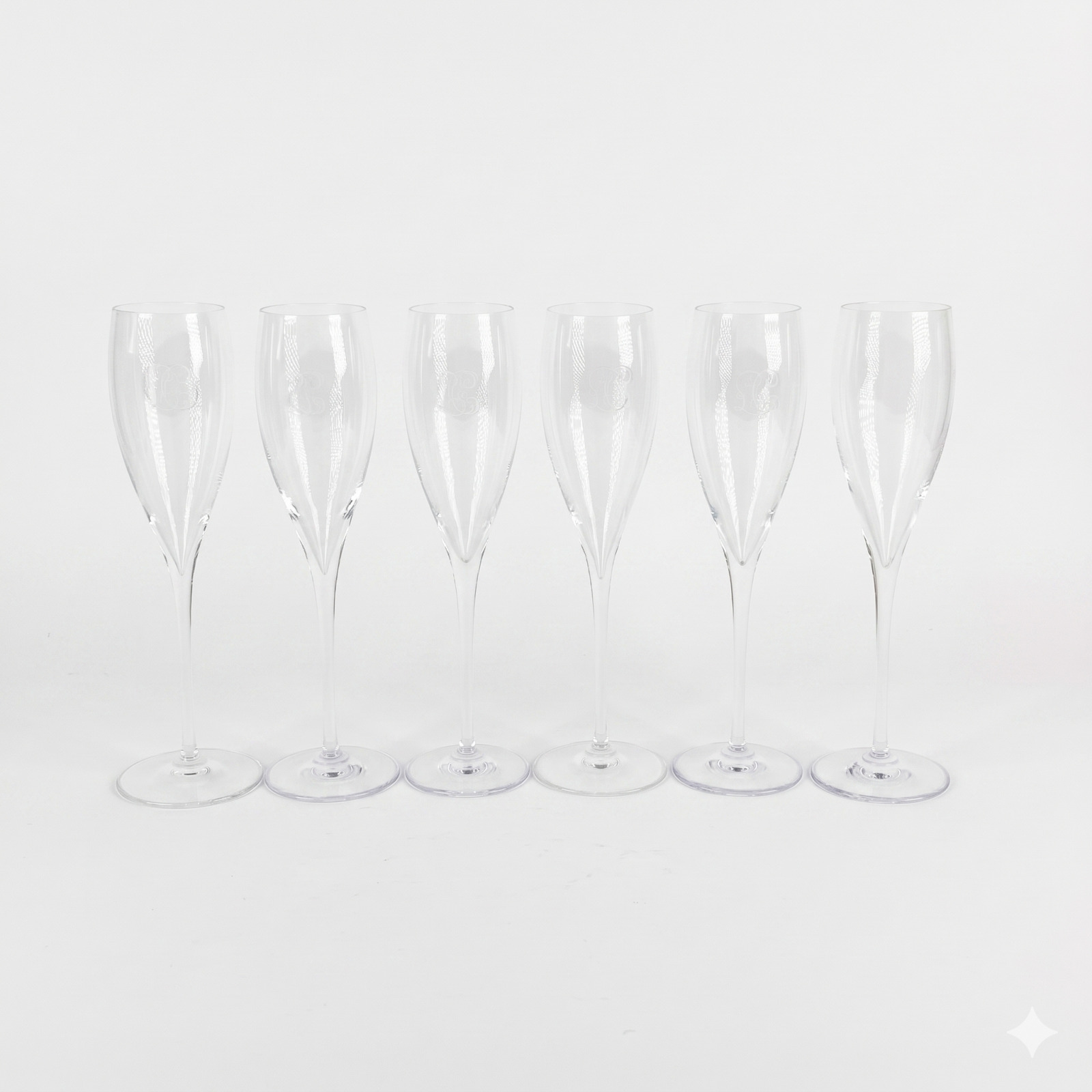 CRISTALLERIE DE PORTIEUX : Service de six verres à pieds en cristal incolore, monogramme LC, H. 23.7 cm