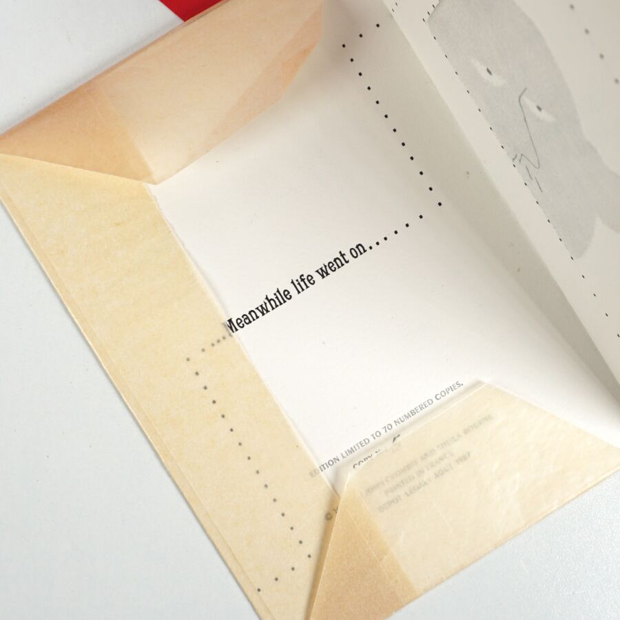 CROMBIE (John) & BOURNE (Sheila). Meanwhile life went on. Paris, Kickshaws, 1987. In-12 de 36 pp. non ch., broché, couv. illustrée. Livre d'artiste. Tirage limité à 70 exemplaires numérotés (n° 5).