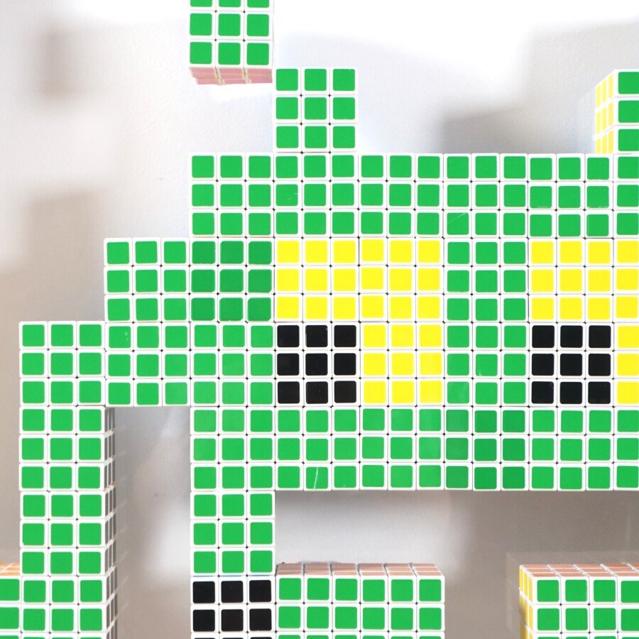 CUBISHAI 21 (XXe-XXIe), "Sans titre", sculpture constitué de rubik's cube, signée en haut à droite, 84 x 98 cm (encadrée).