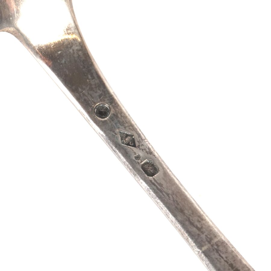 Cuillère saupoudreuse, argent, poinçon Vieillard 1er titre, grosse garantie Paris, poinçon de Maître Orfèvre "BC", le différend à motif d'un lièvre courant, à décor chiffré "SD", L. 20.1 cm. Poids brut : 72 g environ.