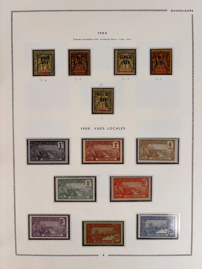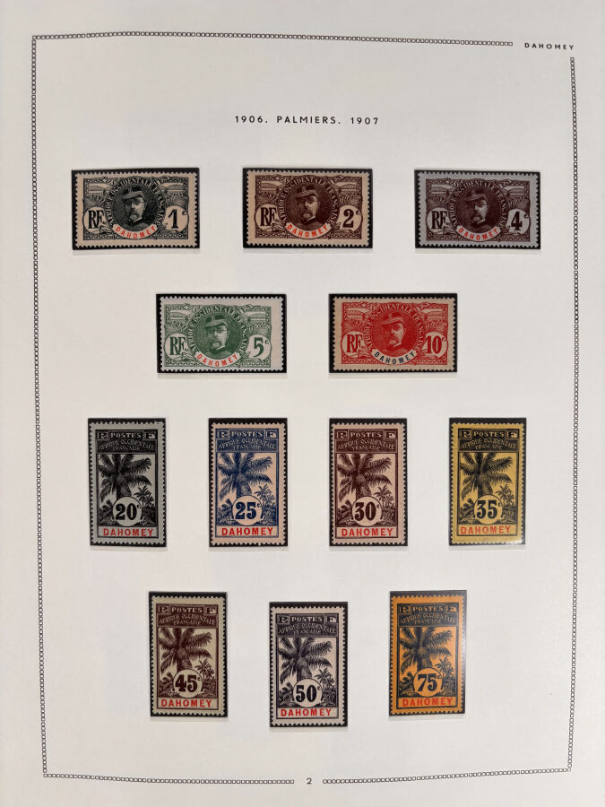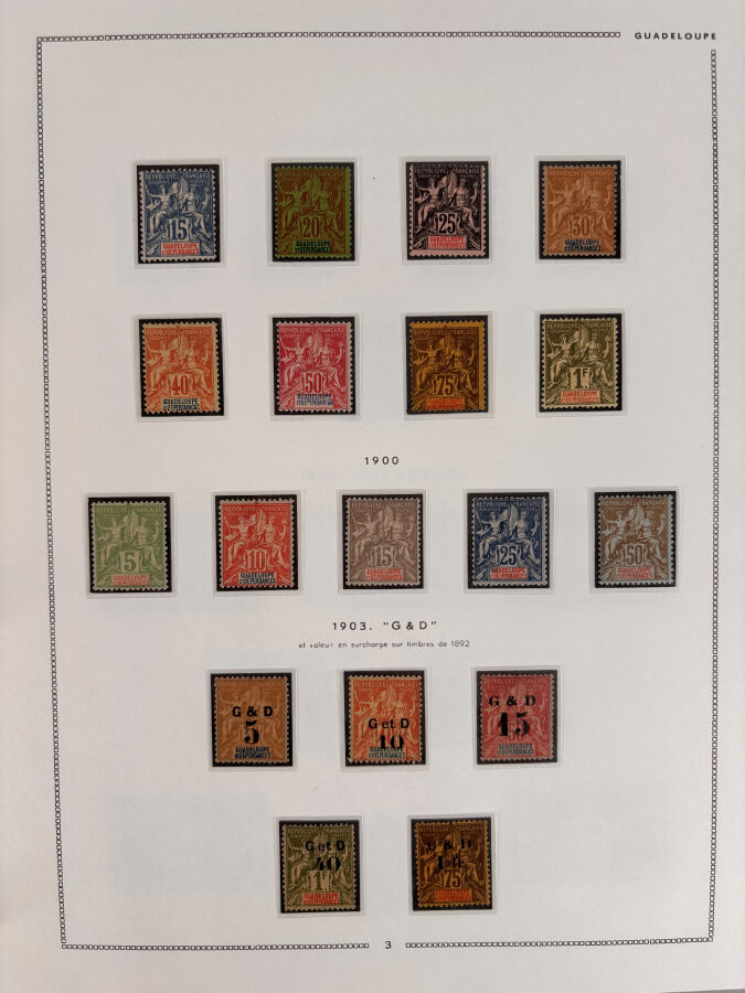 DAHOMEY - GABON - GUADELOUPE - GUINÉE - GUYANE - HT SENEGAL : En album MOC très belle collection de TP N**, N*, bonnes valeurs, quelques fac-similés, forte cote.