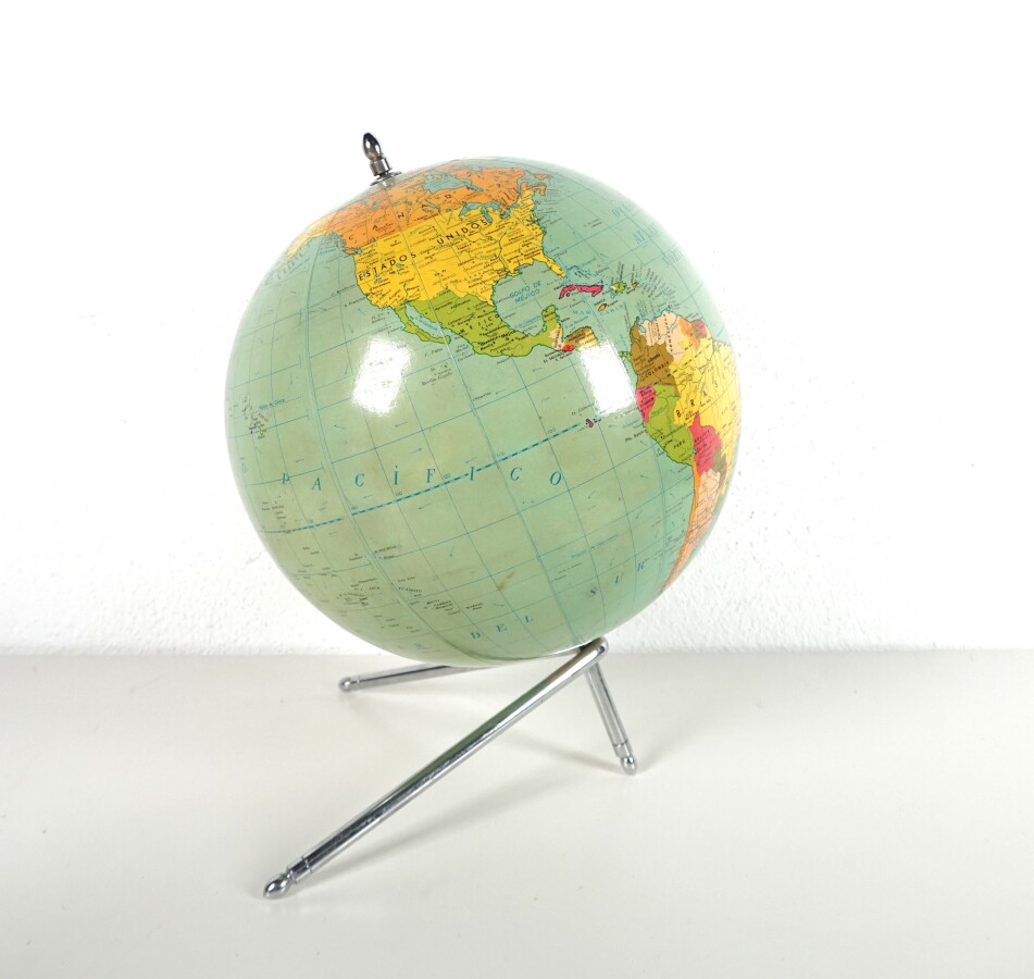 DALMAU CARLES PLA : Globe terrestre, sur piètement en métal, H. 33 cm.