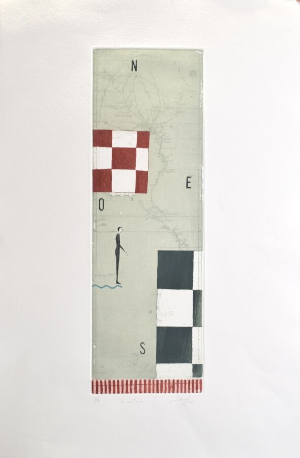 Daniel AIRAM (1958), "Les continents" 2001, lithographie, signée en bas à droite, numérotée 5/50, 41 x 13 cm.