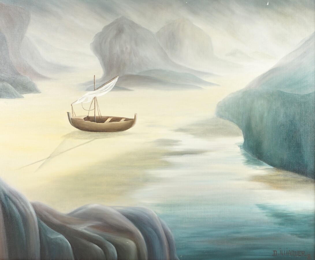 Danielle ILLIAQUER-MALRIC (XXe), "Atlantide" 81, huile sur toile, signée en bas à droite, 48.5 x 60 cm.