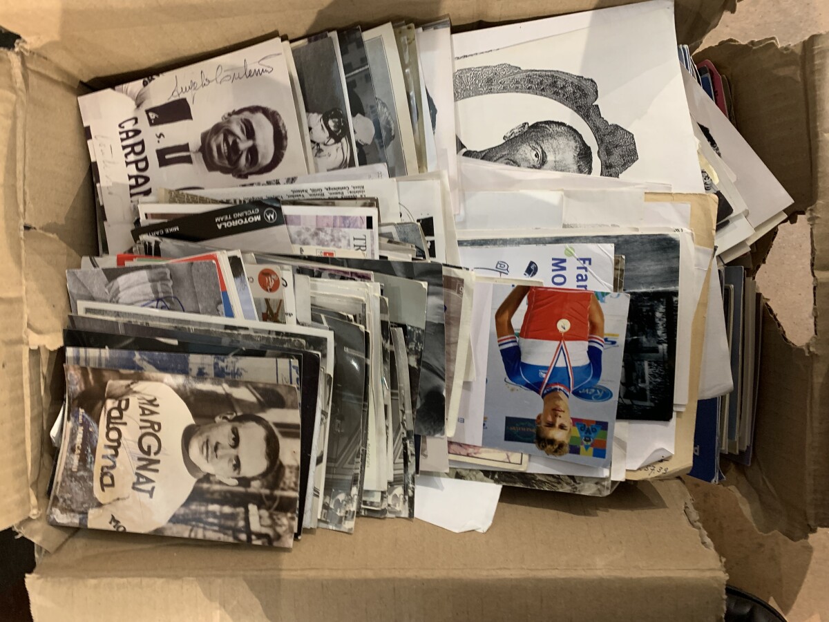 Dans 16 petits cartons, plus de 10 000 photos, cartes et impressions de coureurs cyclistes, dont certaines dédicacées, toutes époques, en grande majorité moderne.