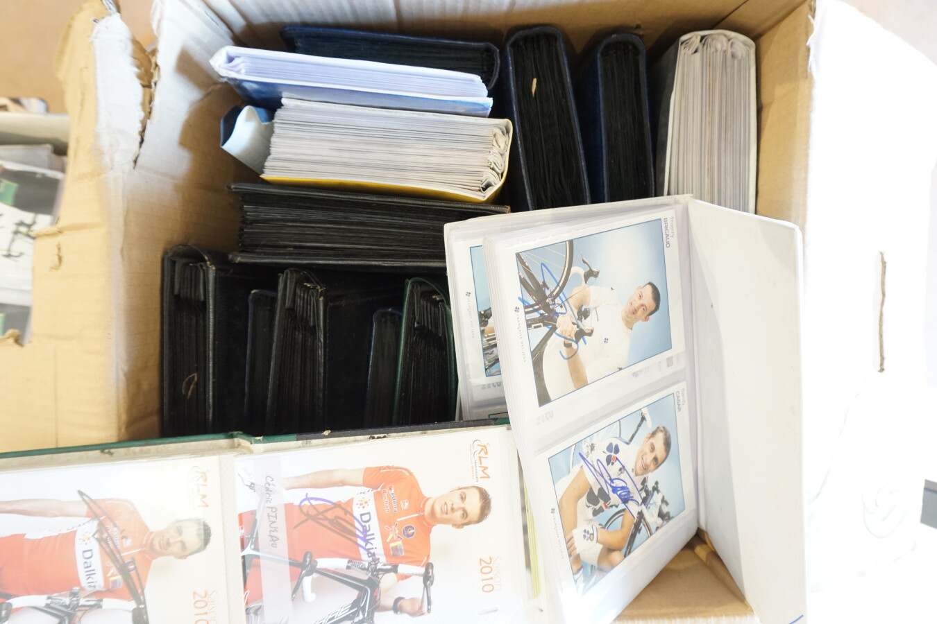 Dans 4 cartons et dans plus de 100 albums, collection de photos dédicacées ou non de coureurs cyclistes. On joint un carton de documentation.