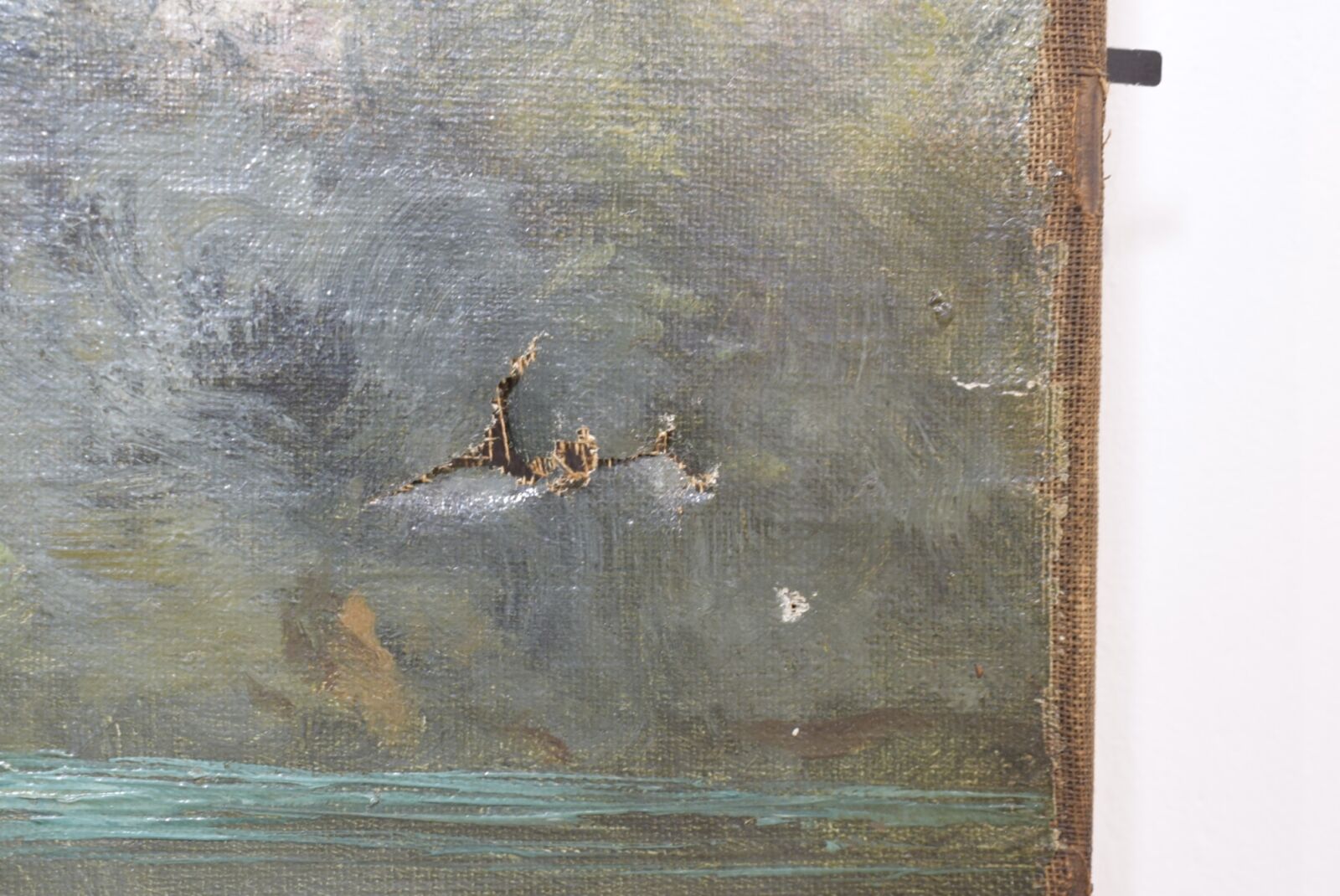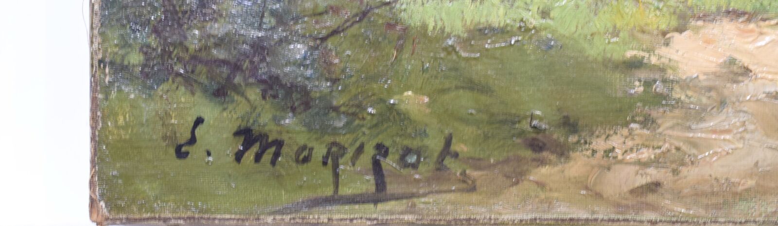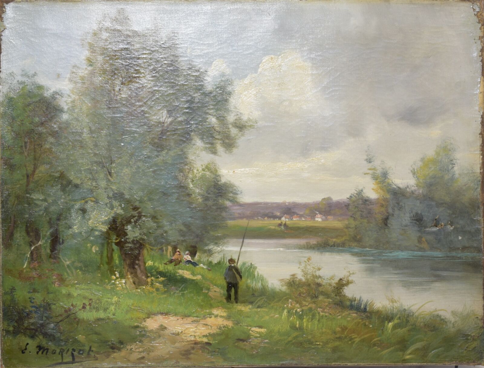 Dans le goût de Carolus MORIZOT (XXe), "Le Pêcheur", huile sur toile, signée en bas à gauche, 19.5 x 65 cm. (accident et manques)