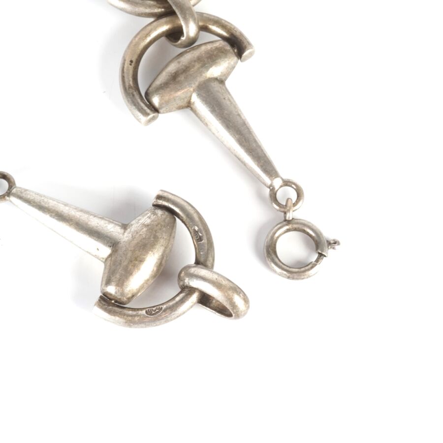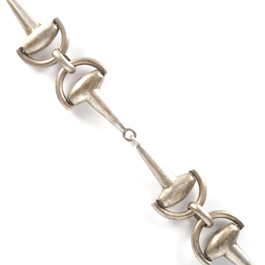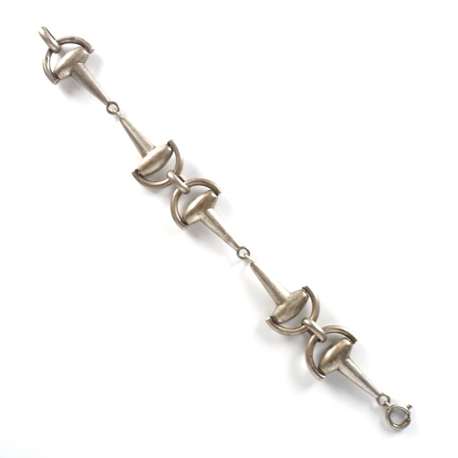 Dans le goût de HERMES : Bracelet "mors" en argent (800/oo), fermoir à anneau ressort, L. Totale : 20.5 cm. Poids brut : 26.5 g environ.