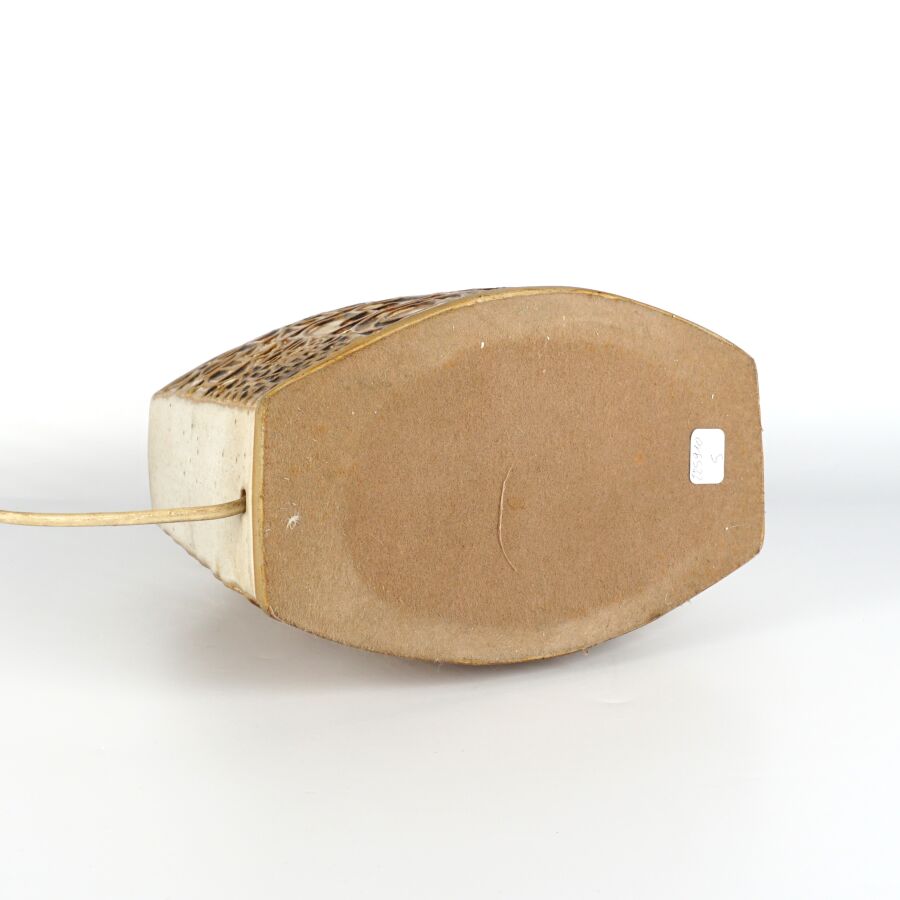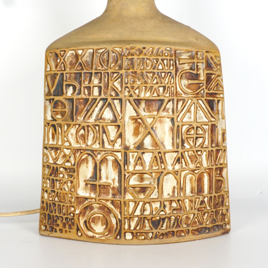 Dans le goût de Peter ELLERY (1923-1996) : Pied-de-lampe en grès de forme bouteille plate à décor en légers reliefs de hiéroglyphes, H. 30 cm.