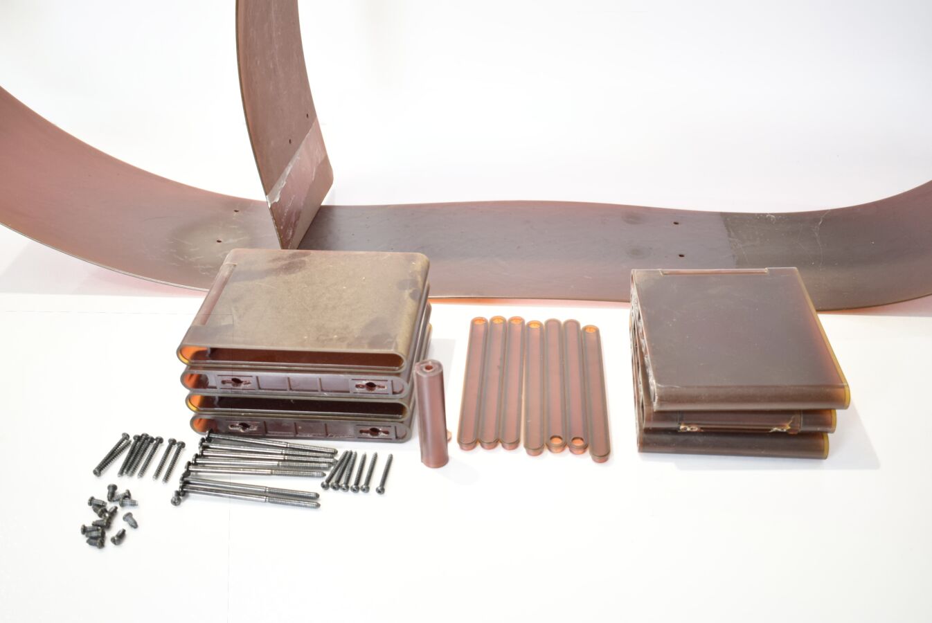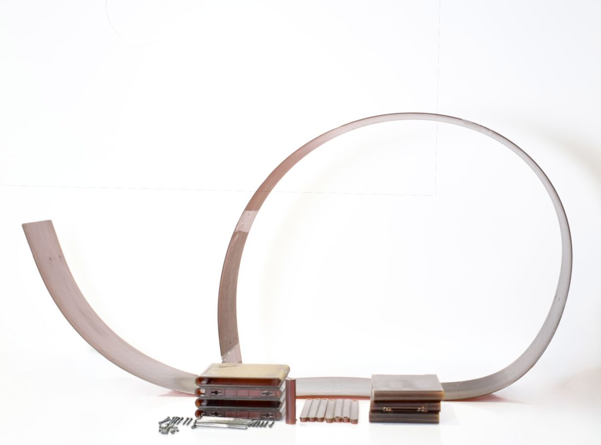 Dans le goût de Ron ARAD (1951) : Etagères "BOOKWORM" de forme libre accompagné de sept tablettes, en PVC marron. (usures, traces de scotch)