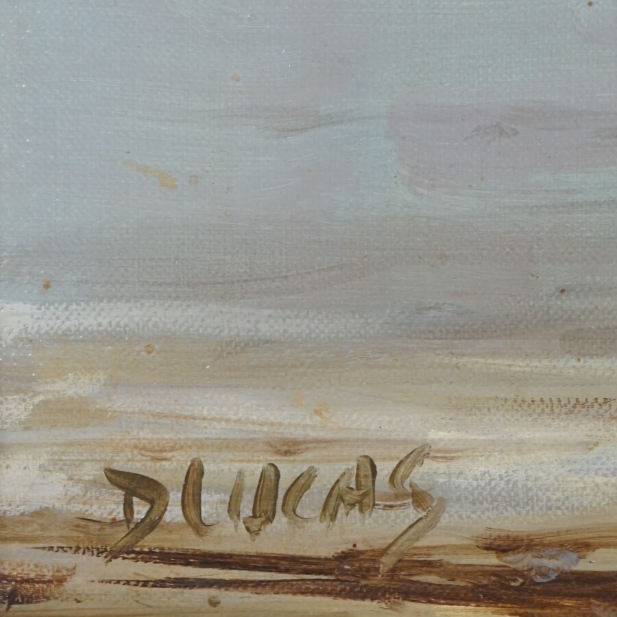 Dany LUCAS (XXe), "Barques", huile sur toile signée en bas à gauche, 60 x 73 cm (petites projections sur la toile).