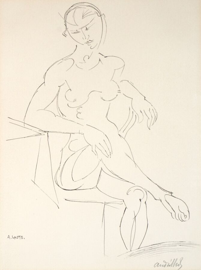 D'après André LHOTE (1885-1962), "Nu assis", lithographie sur papier, signée dans la planche et signée en bas à droite dans la marge, Dim. 50 x 40 cm (à vue).