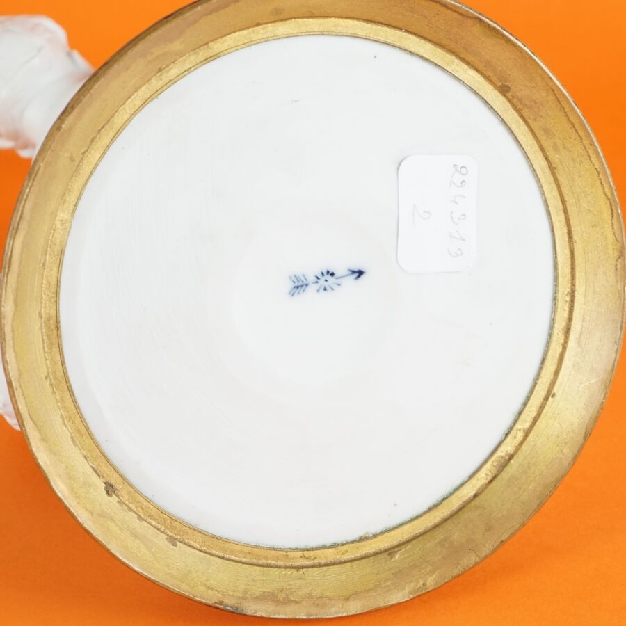 D'après BOUCHER, "Enfants à la conque", groupe en biscuit, cerclage en bronze doré à la base, porte une marque en bleu dessous, H. 17.5 cm.