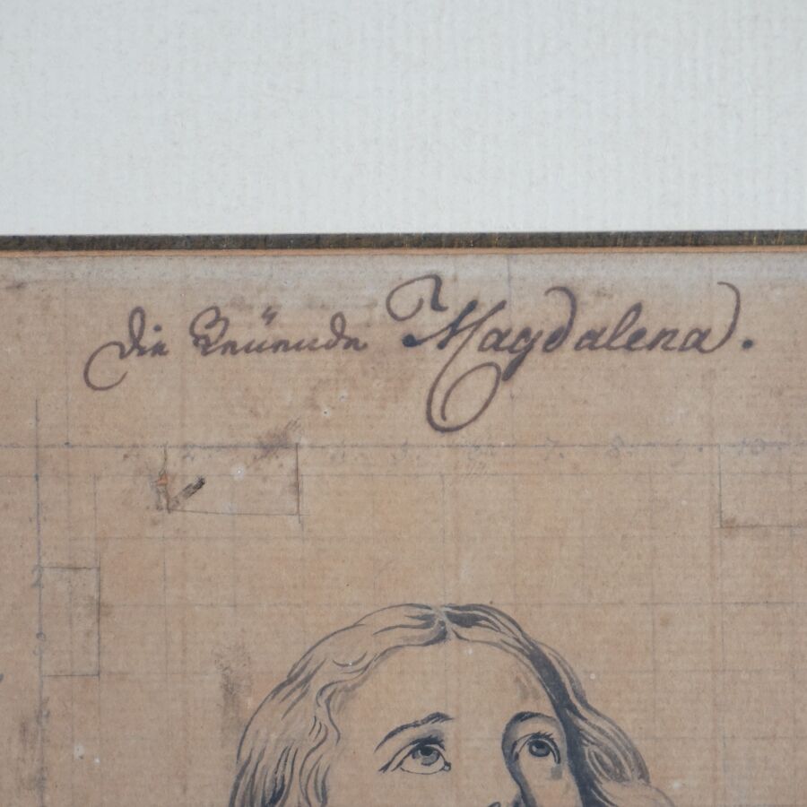 D'après Carlo DOLCI (1616-1686), "Portrait de femme", dessin au crayon, copie d'après l'artiste datée de 1808, 15.5 x 12 cm (traces, déchirures).