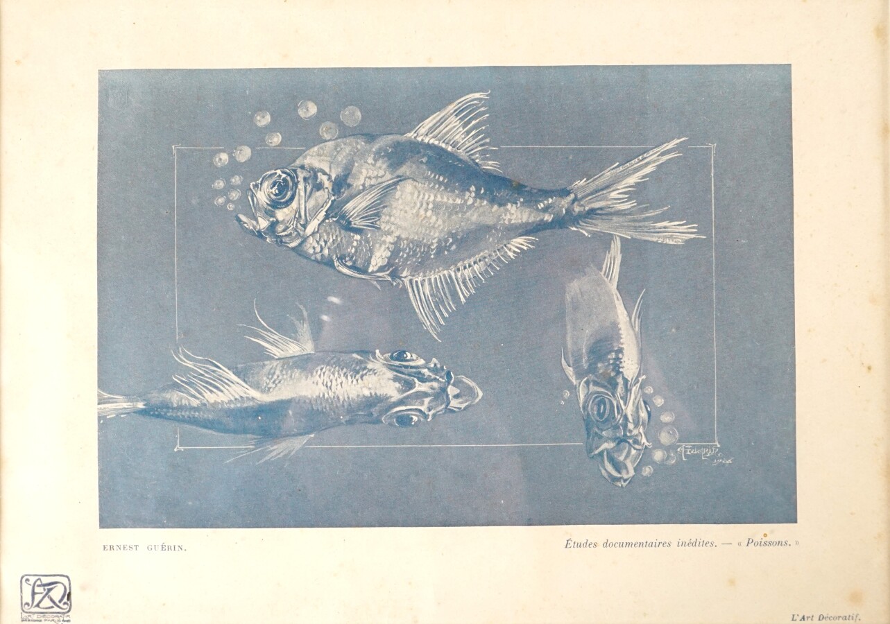 D'après Ernest Pierre GUÉRIN (1887-1952), Ensemble de 3 reproductions des études documentaires "Crevettes", "Poissons" et "Les Carabiques" (encadrées).