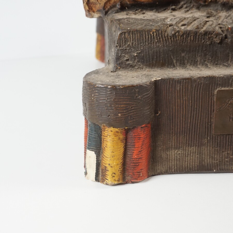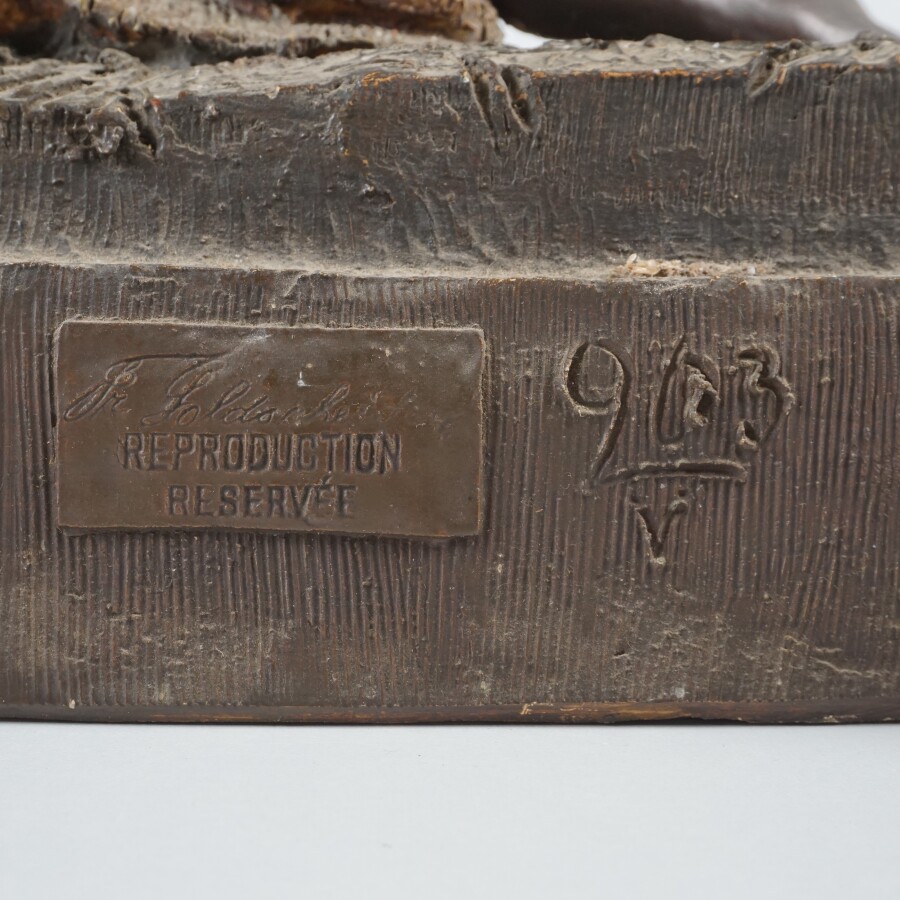 D'après F. GOLDSCHEIDER (XIXe), "Femme orientale", importante sculpture en terre cuite patinée, numéroté et porte un cachet au dos du socle, H. 98 cm (manque un doigt, petites égrenures et légers éclats au socle).
