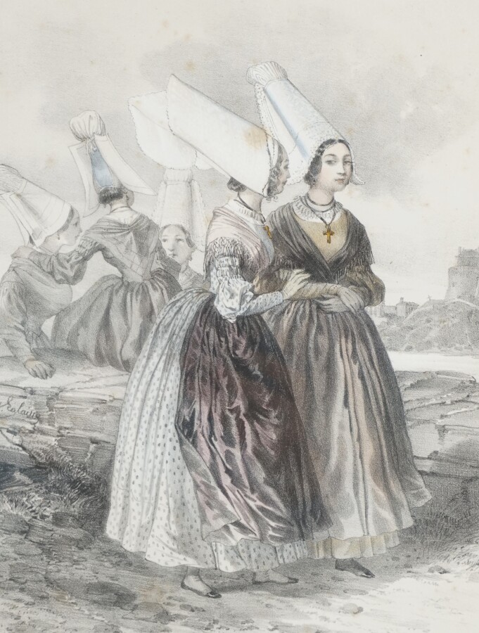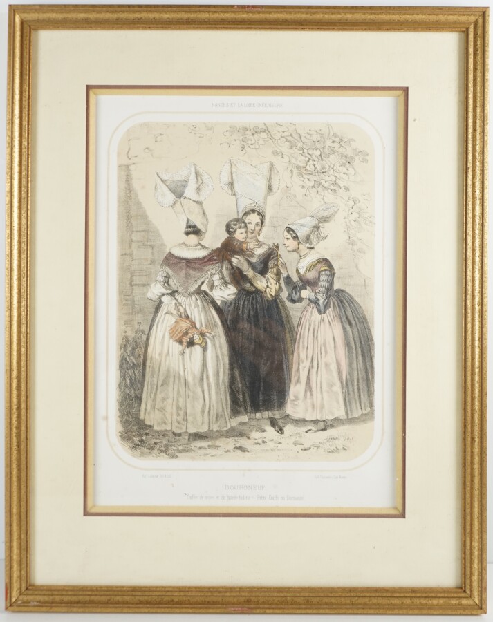 D'après François Hippolyte LALAISSE (1810-1884), Imprimeur Charpentier, Suite de 6 gravures en couleurs dont Batz, Guérande, Locmaria, Pornic, Bourgneuf, 27 x 20 cm, 30 x 23 cm.