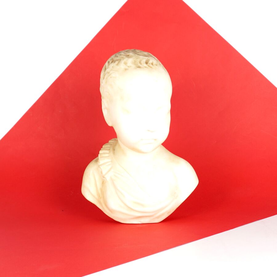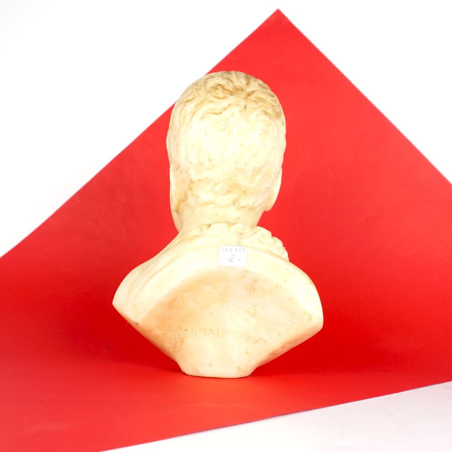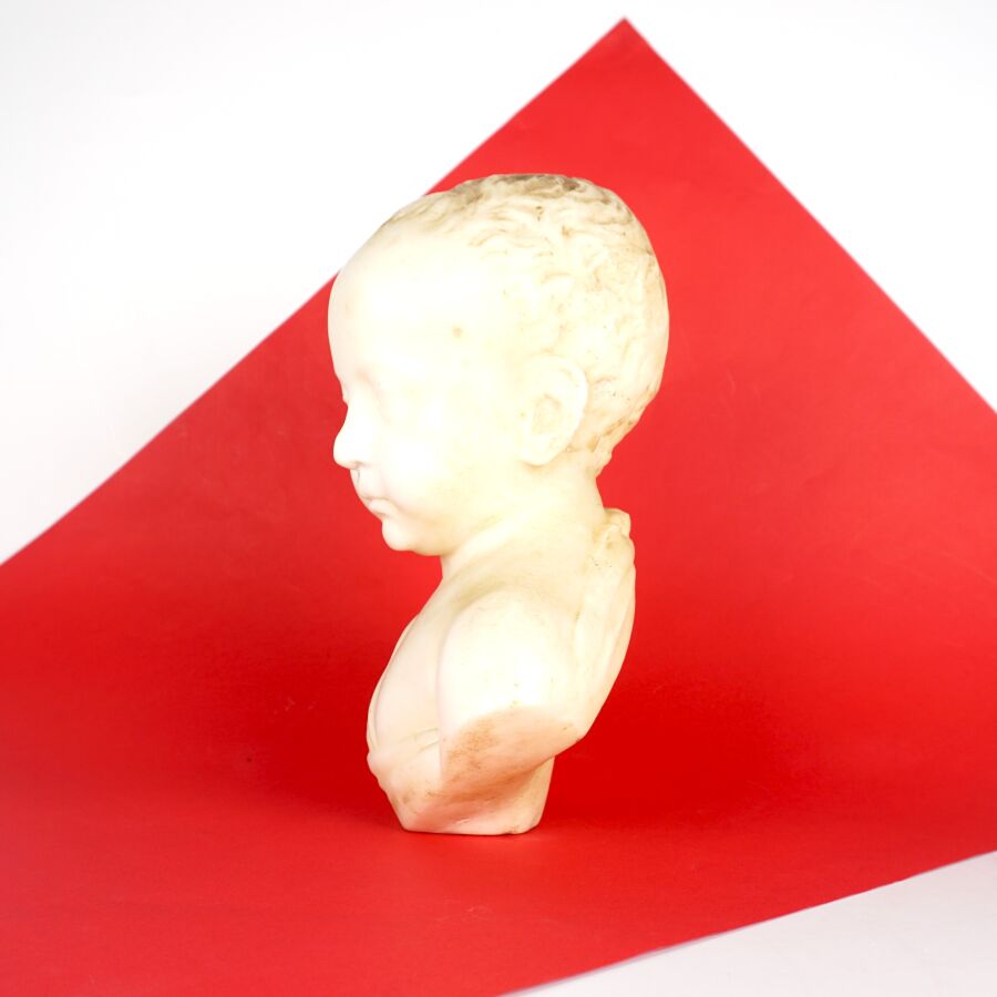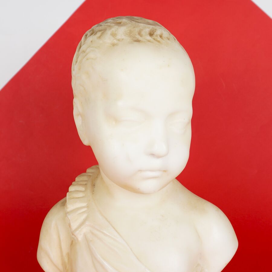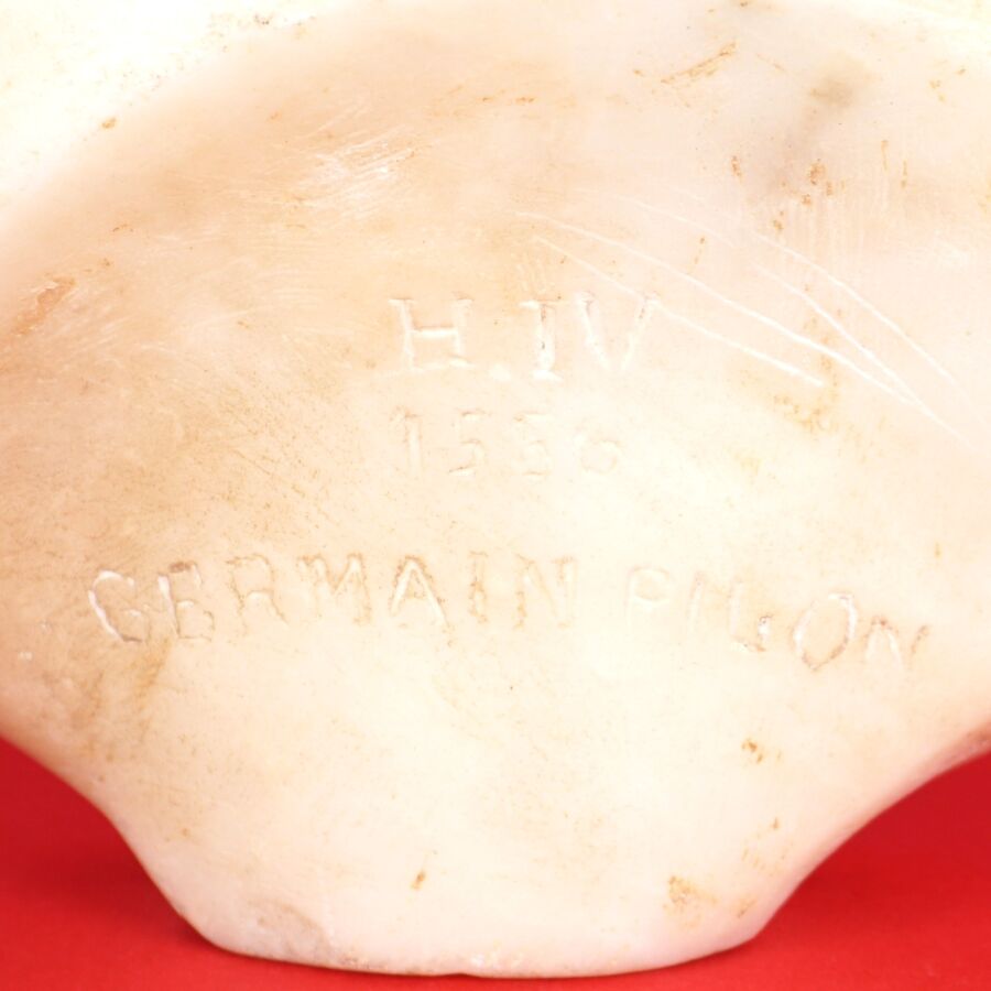 D'après Germain PILON (c.1525-1535-1590), "Buste d'enfant", sculpture en marbre blanc signé et gravé "H IV" au dos, travail de la fin du 19ème siècle, H. 25 cm (éclat, manque le socle).