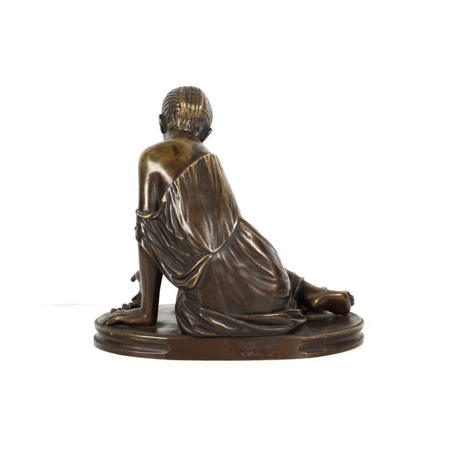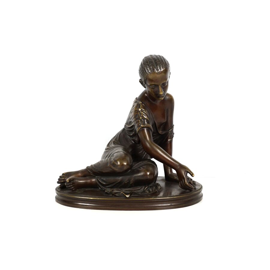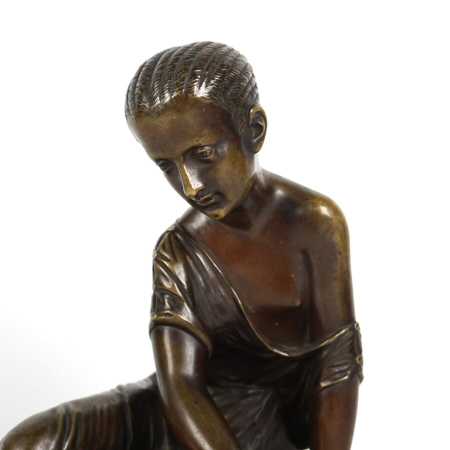 D'après James PRADIER (1790-1852), "La joueuse d'osselets", sculpture en bronze à patine médaille, H. 21 cm.