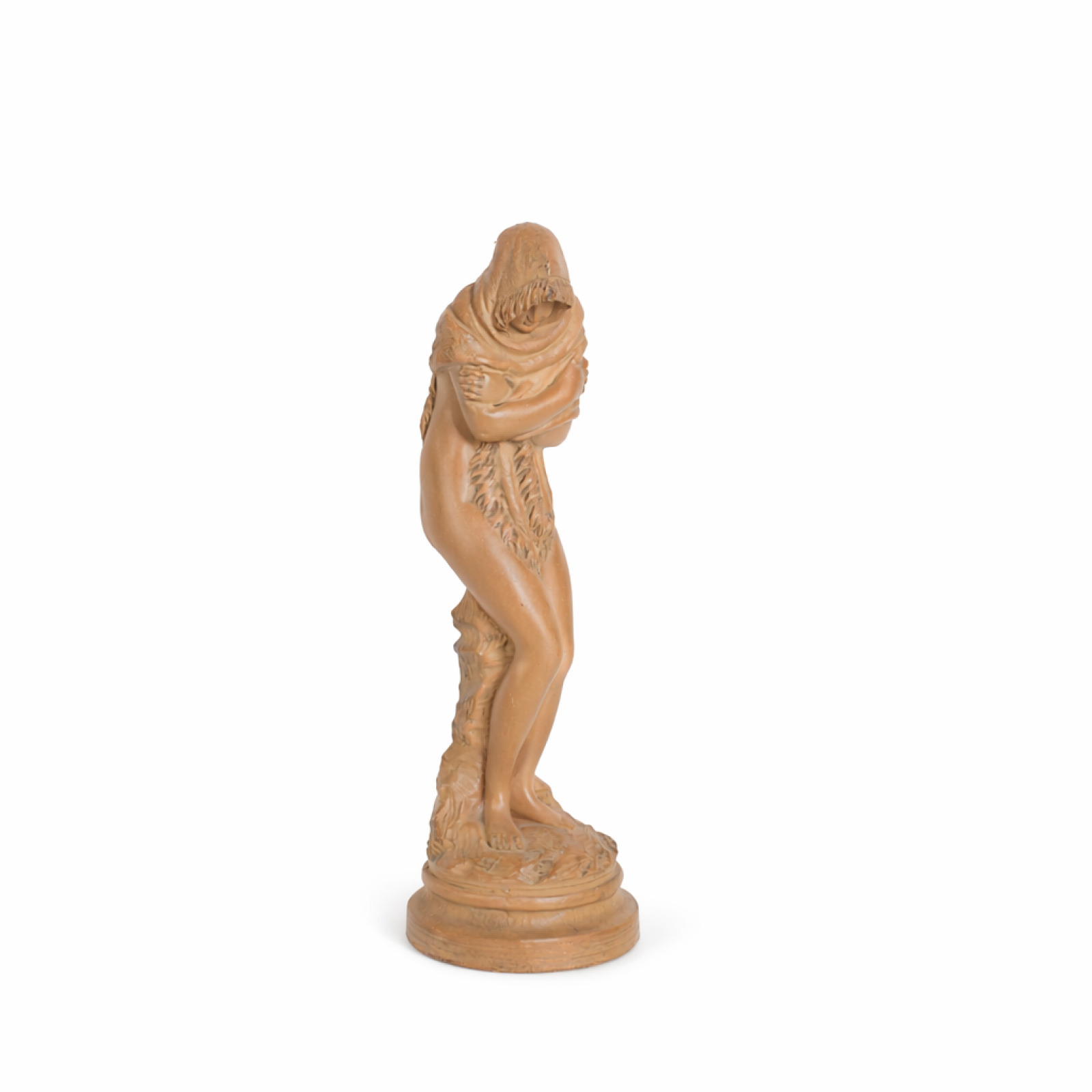 D'après Jean-Antoine HOUDON (1741-1828), "La frileuse", terre cuite sur socle, H. 27 cm