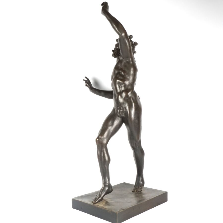 D'après l'Antique, "Faune dansant", sculpture en bronze à patine brune, d'après le faune dansant de Pompéi, H. 79 cm.