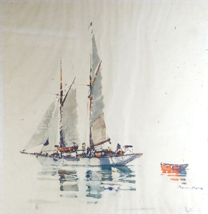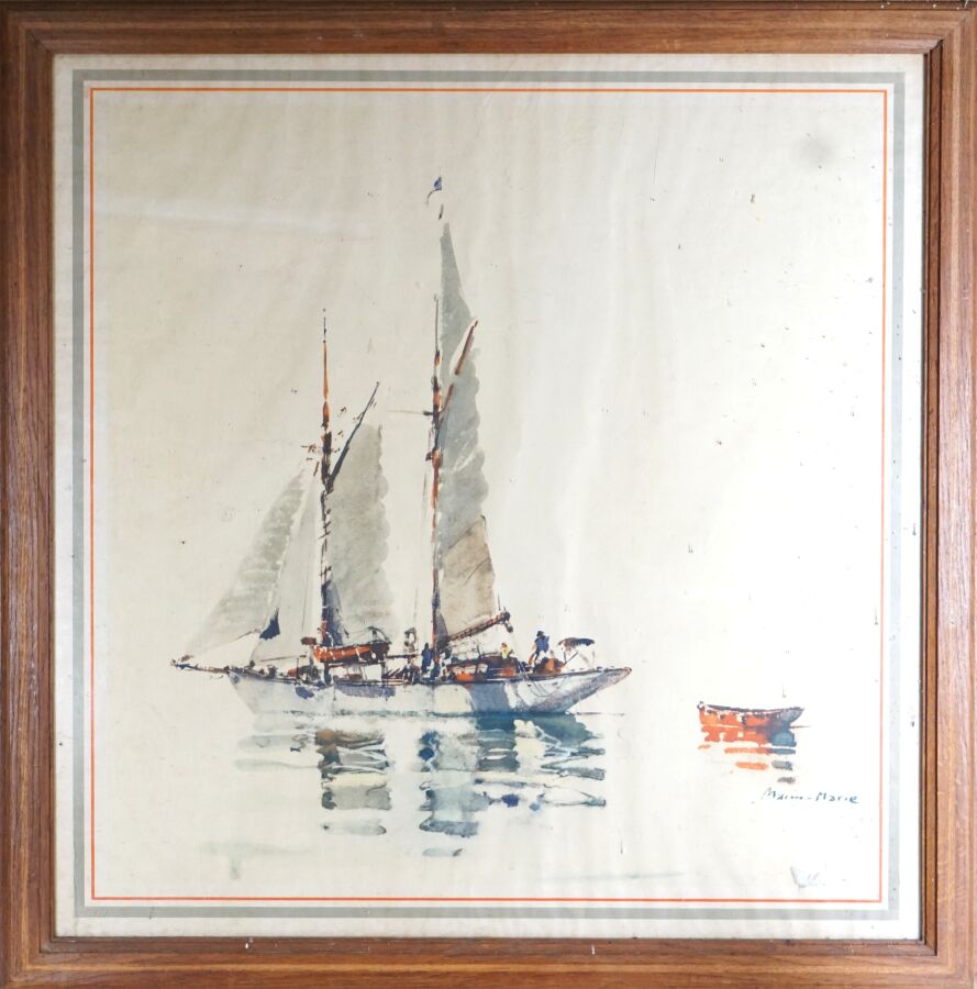 D'après Marin MARIE (1901-1987), "Voilier", reproduction, 64 x 62.5 cm (à vue) (petites usures).
