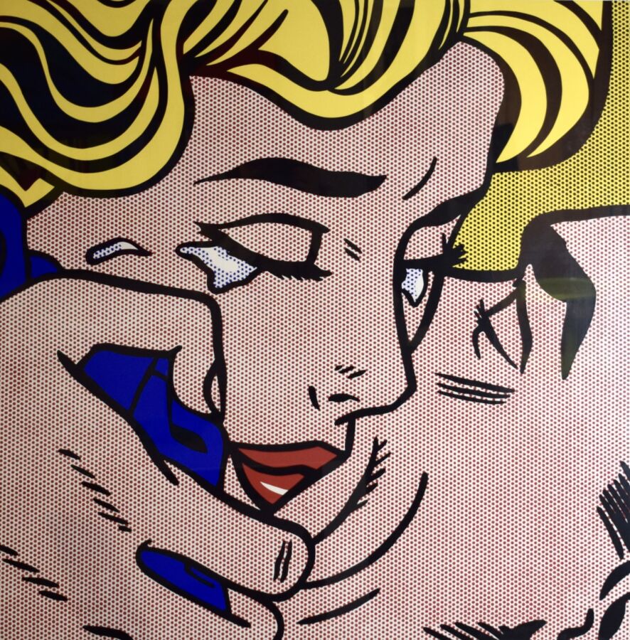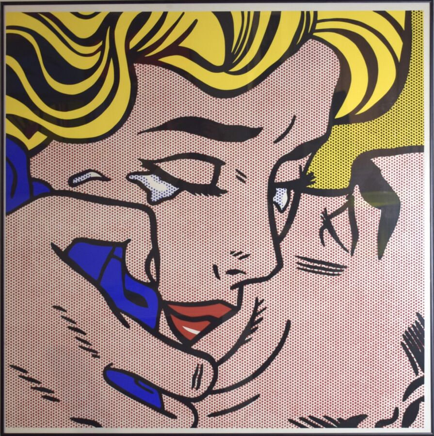 D'après Roy LICHTENSTEIN (1923-1997), "Kiss V" 1964, sérigraphie en couleur sur papier, imprimée aux Etats-Unis, 78 x 77.5 cm