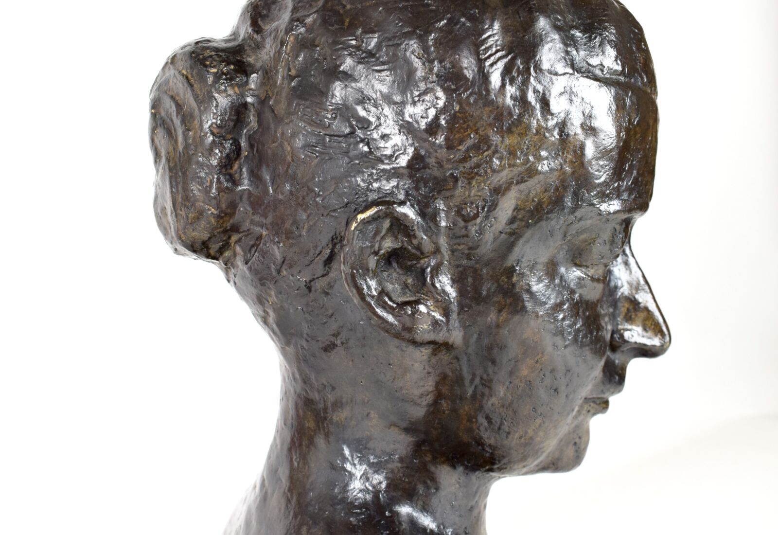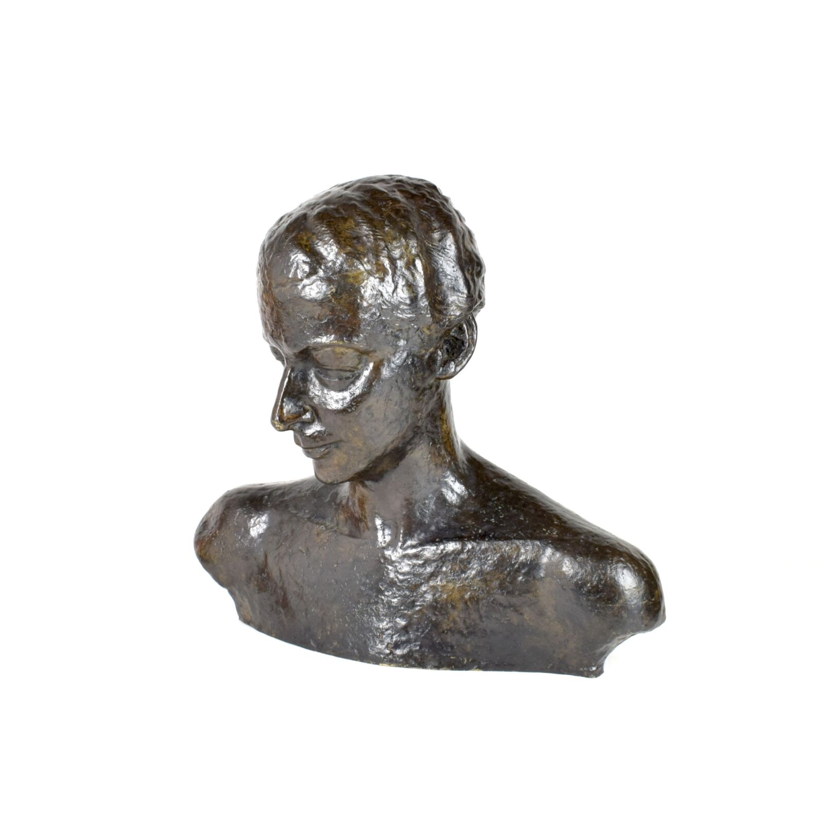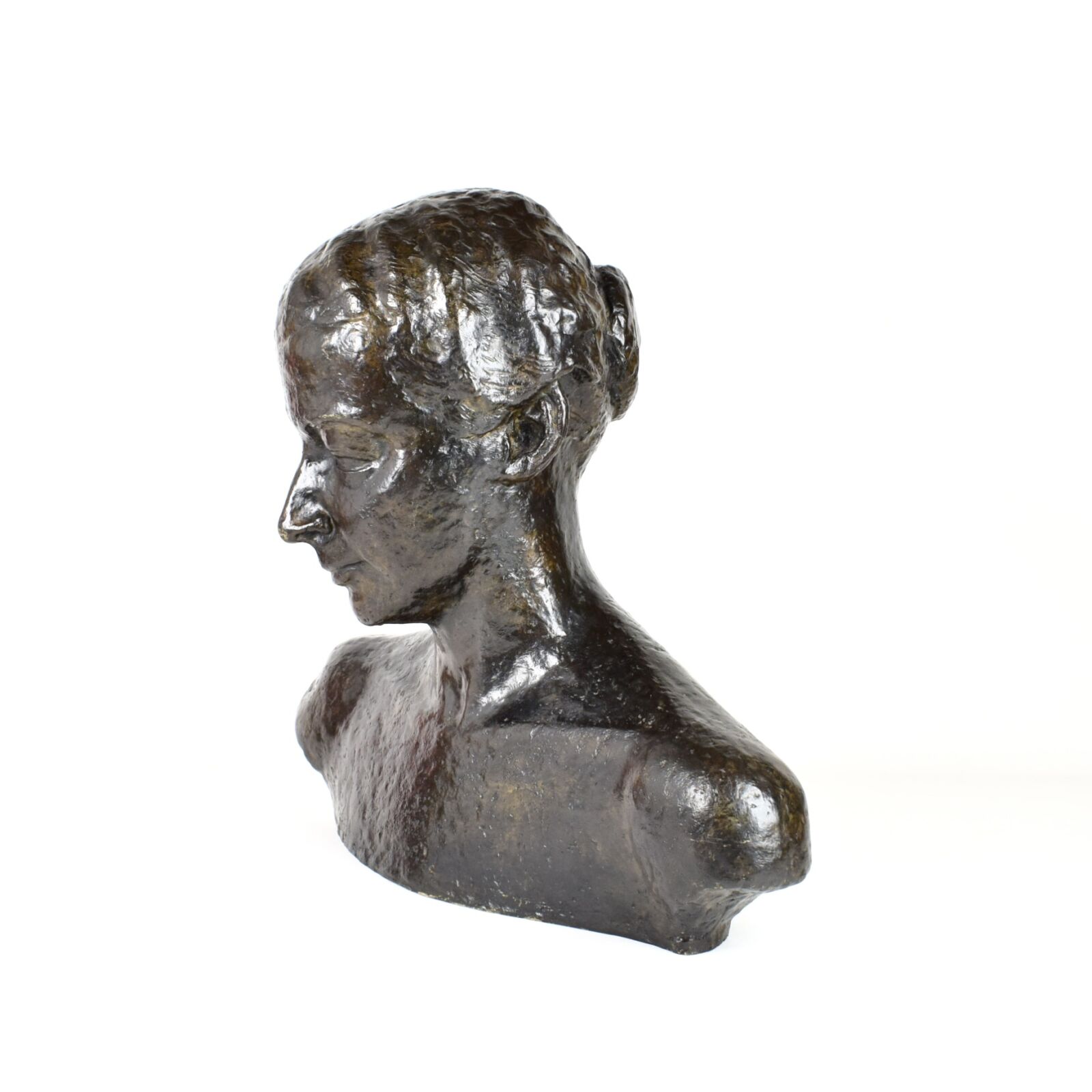 D'après Wilhelm LEHMBRUCK (1881-1919), "Buste de femme", bronze à patine noire, porte une signature au dos, Long. 45 cm, H. 44.5 cm, Prof. 10 cm (aspérités)