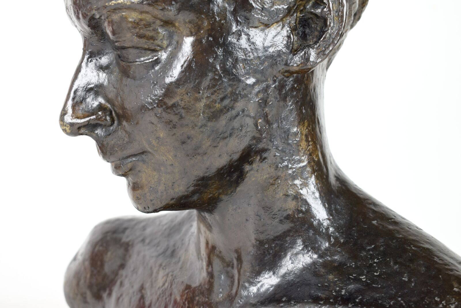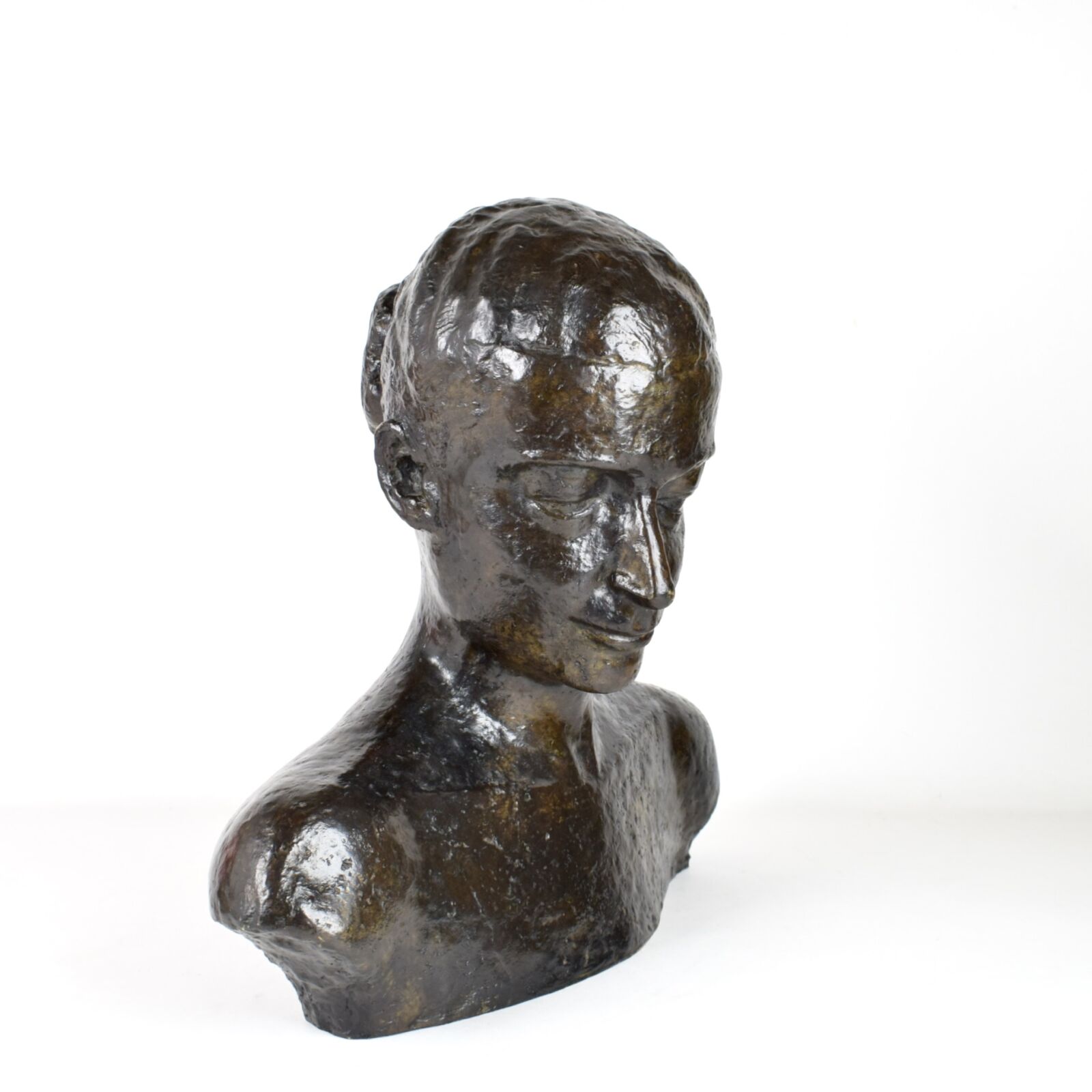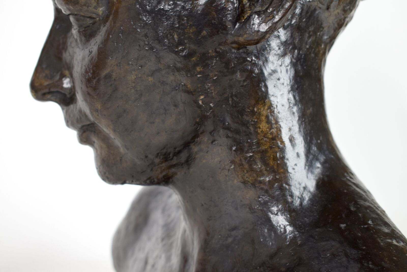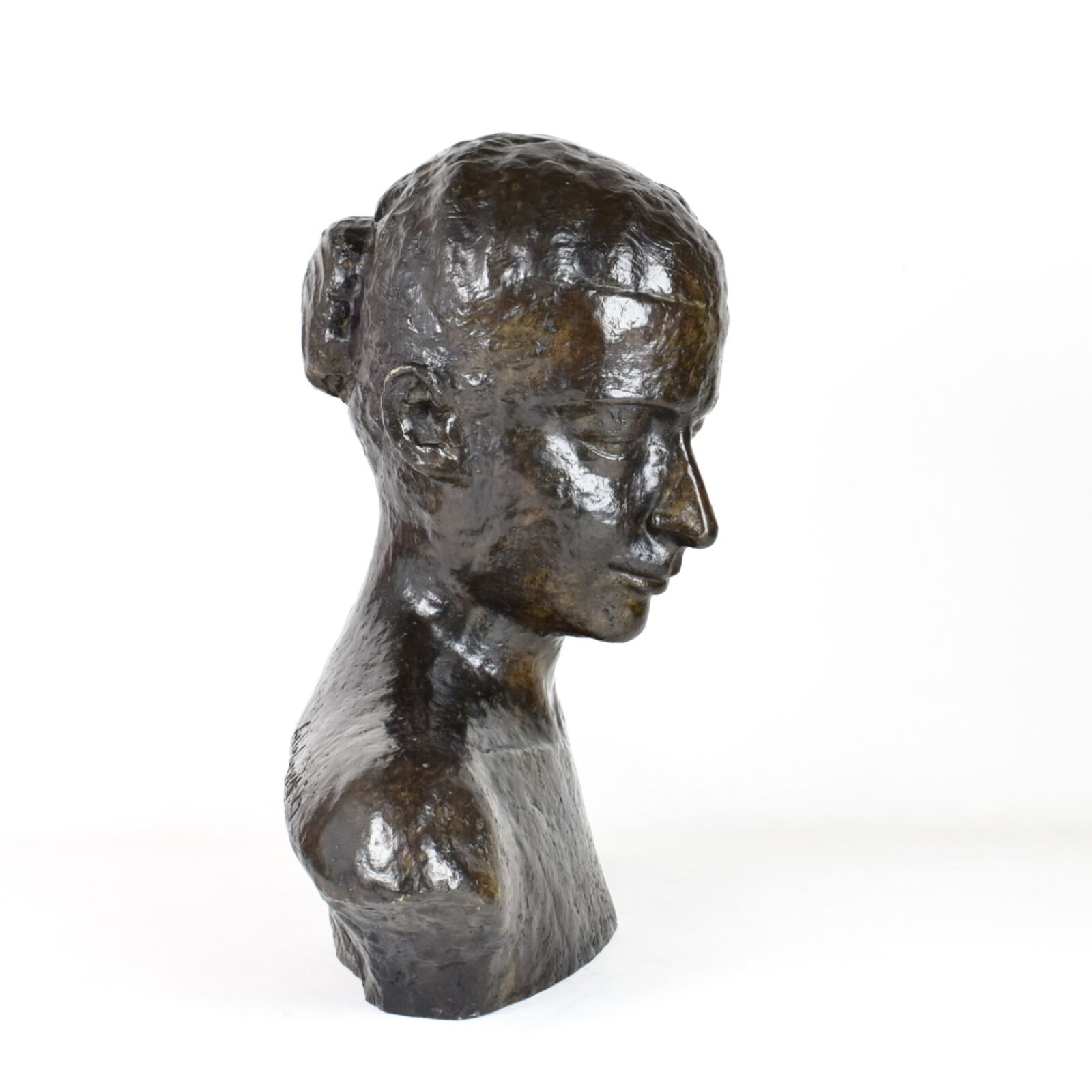 D'après Wilhelm LEHMBRUCK (1881-1919), "Buste de femme", bronze à patine noire, porte une signature au dos, Long. 45 cm, H. 44.5 cm, Prof. 10 cm (aspérités)