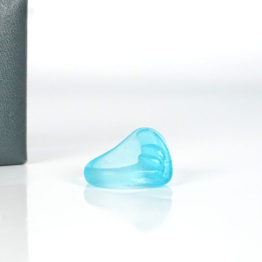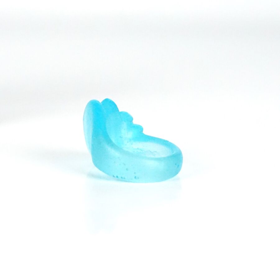 DAUM : Bague "Nymphéa" en pâte de verre teinté bleu-turquoise, non signée, présentée dans sa boîte, TDD. 54. Larg. 1.9 cm.
