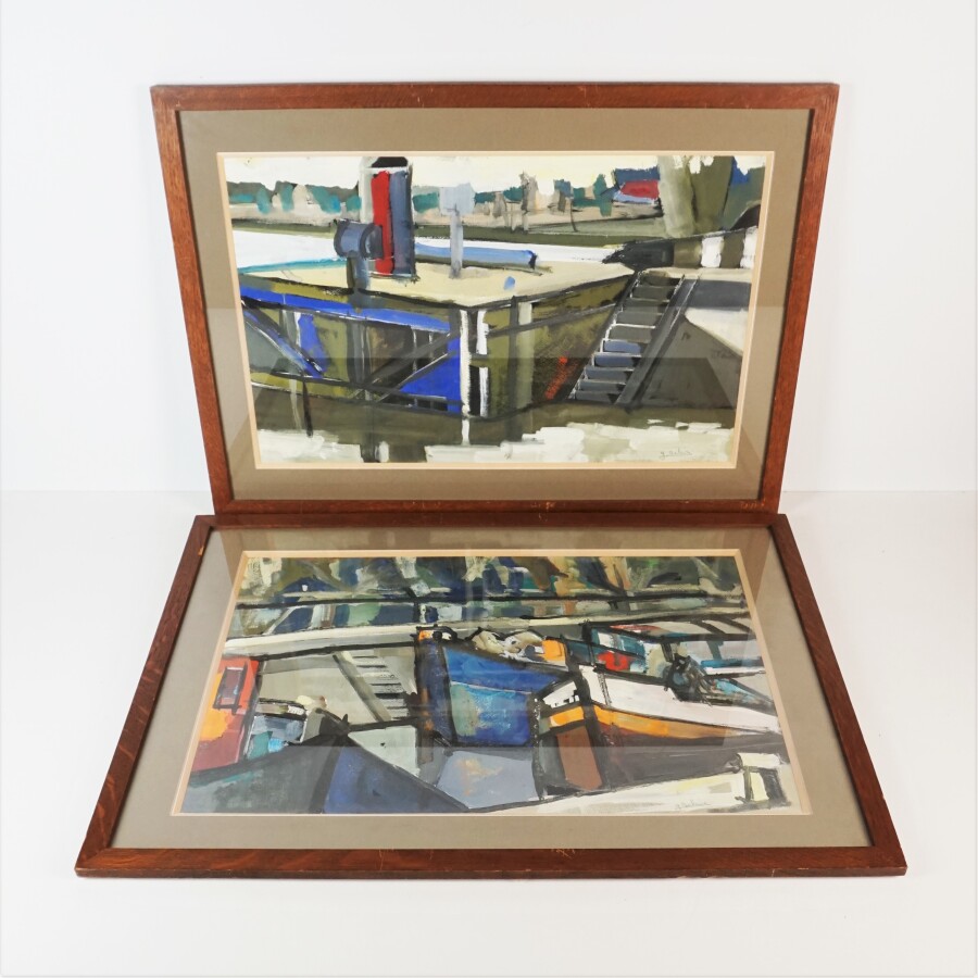 DELAIRE (XXe), "Pontons", huiles et gouaches sur papier formant un pendant, signées en bas à droite, 32 x 50 cm.