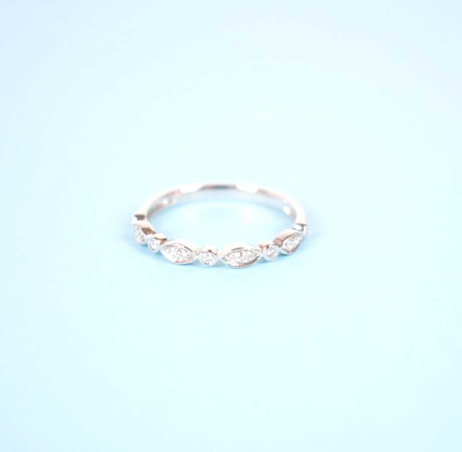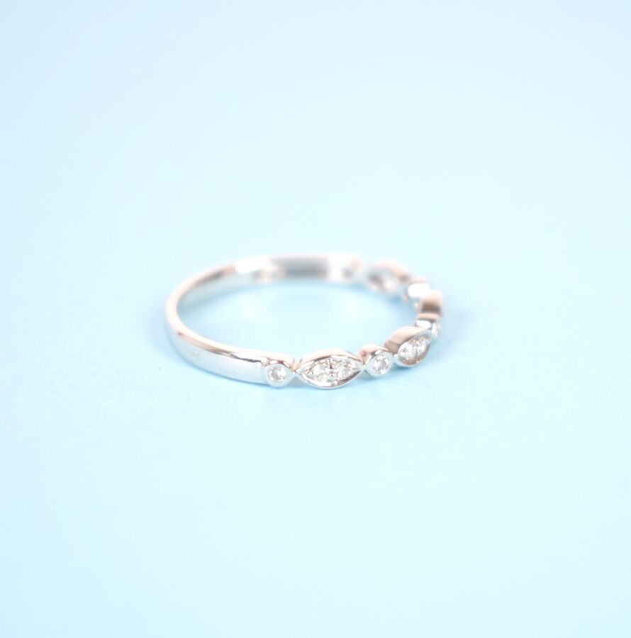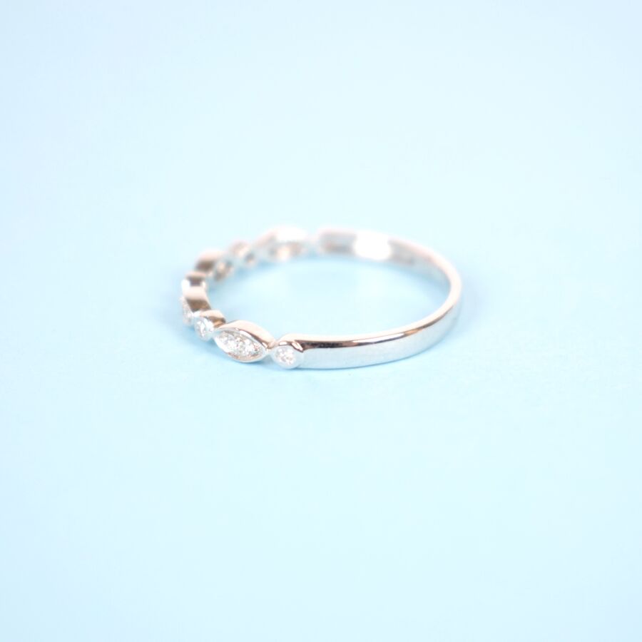 Demi-Alliance en or blanc 18K (750/oo) sertie de 13 diamants blancs taille moderne pour environ 0.1 ct. TDD : 52.5. Poids brut : 1.20 g.