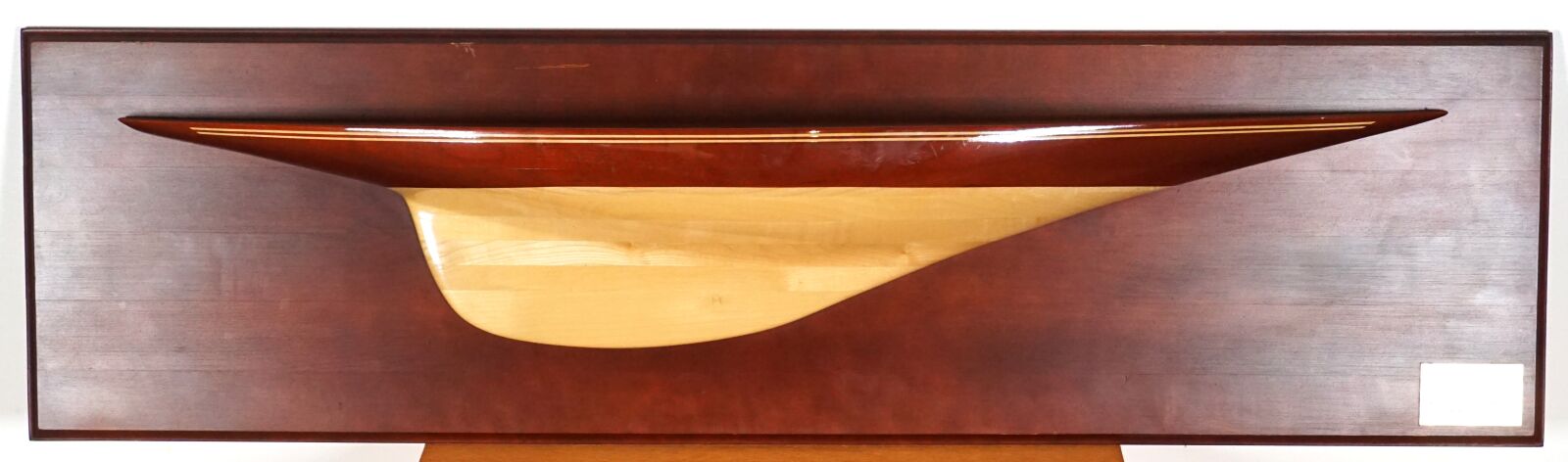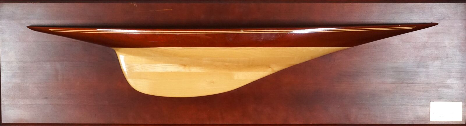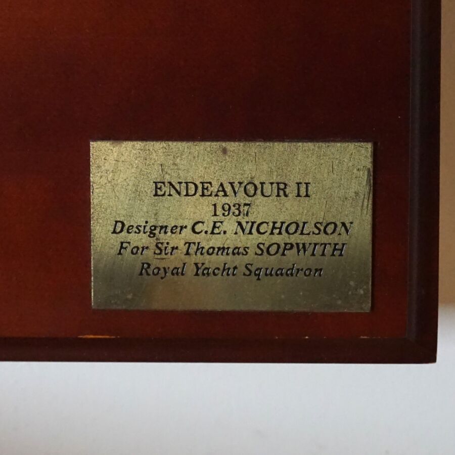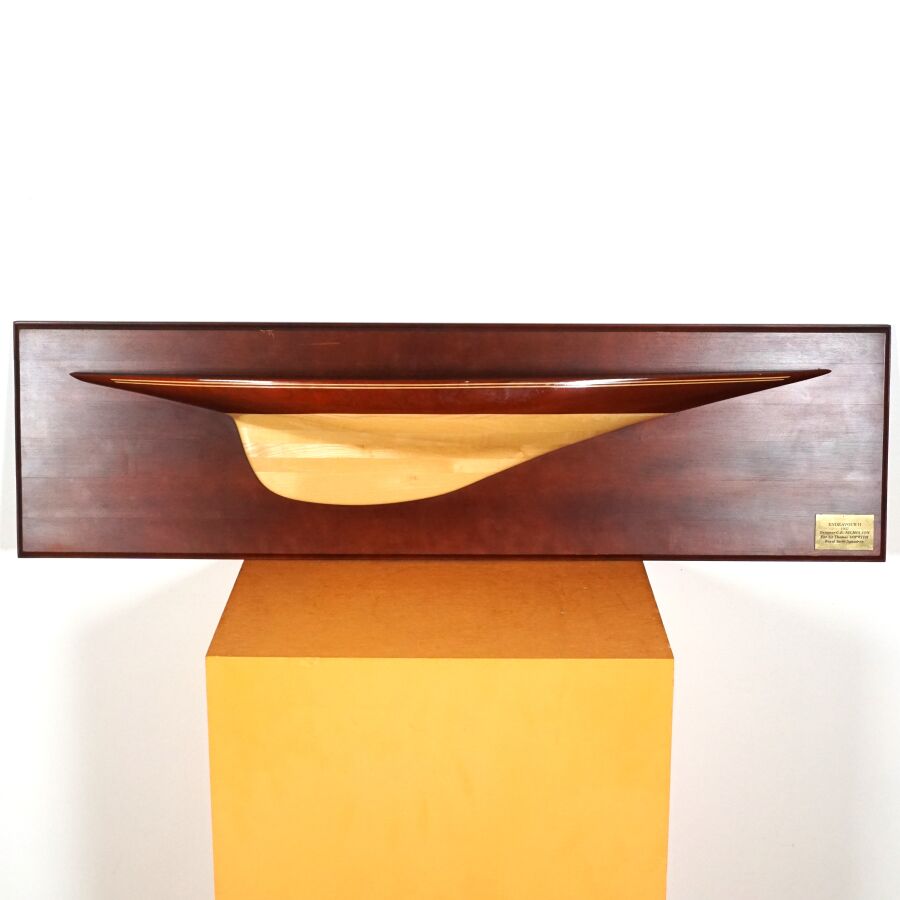 Demi-coque en bois du voilier britannique "ENDEAVOUR II, 1937", yacht réalisé par Charles Ernest NICHOLSON (1868-1954) pour Sir Thomas SOPWITH (1888-1989), Dim. Totales : 97 x 27 cm.