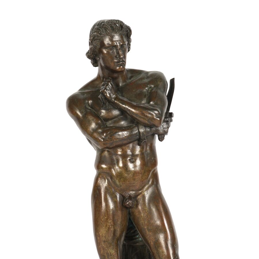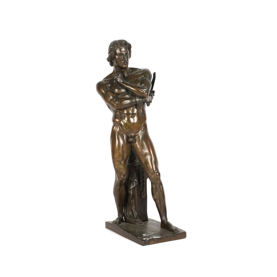 Denis FOYATIER (1793-1863), "Spartacus", sujet en bronze à patine brune, signé en creux sur la terrasse, H. 41 cm (accident au glaive).