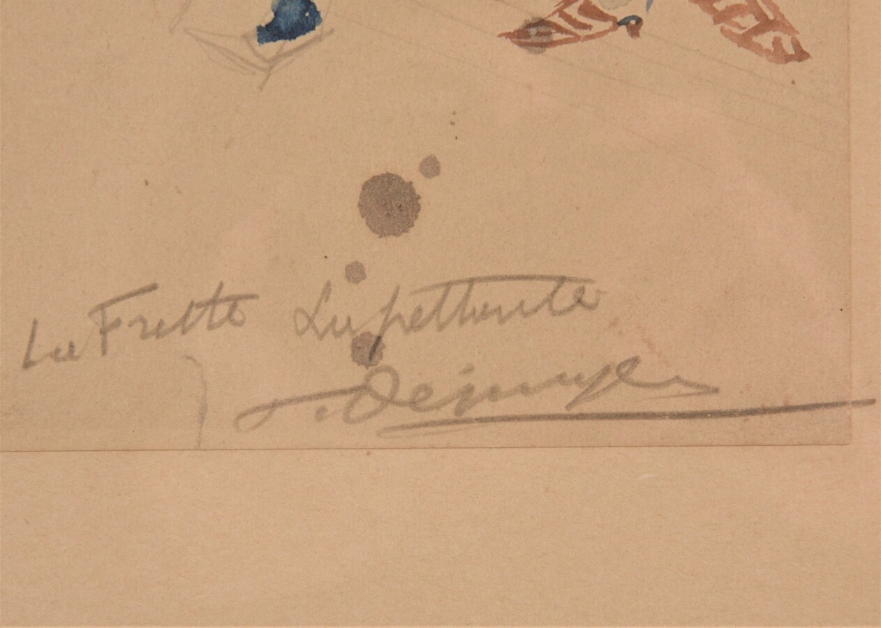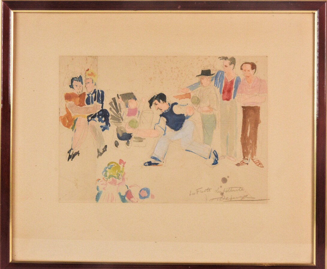DESNOYER (XXe), "La Frette, partie de pétanque", dessin au crayon et gouache sur papier, signé et titré en bas à droite, 22 x 31 cm.