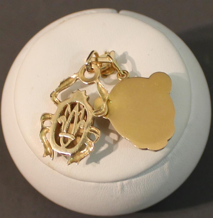 Deux pendentifs en or jaune, représentant un scarabée et tête de léopard. Poids brut : 7.7 g environ