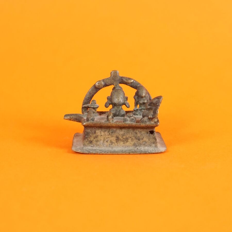 Deux petites lampes à huile Yoni, bronze doré, l'une à décor de paons et d'un bouton de lotus et la seconde à décor d'un Ganesh, Inde du nord, 19ème siècle, H. 11 cm et 4.5 cm.
