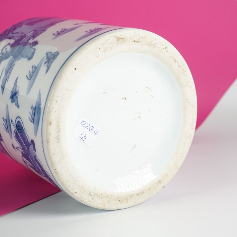 Deux pots couverts en porcelaine à décor bleu blanc de fleurs et végétaux, Chine, travail décoratif moderne, H. 11 cm et 22 cm.