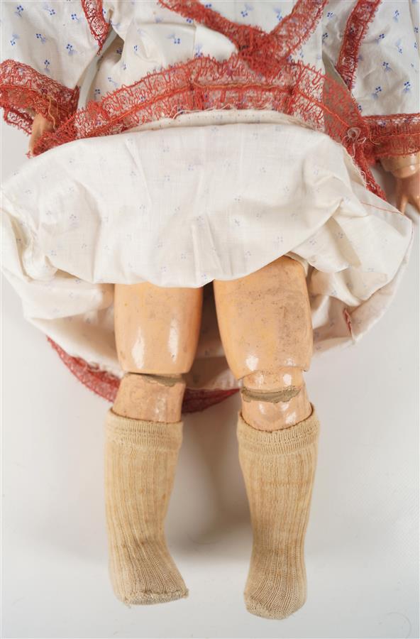 Deux poupées têtes porcelaine SFBJ moule 301 taille 7, corps articulés, l'une yeux dormeurs, l'autre yeux fixes avec fêle, H. 46 cm.