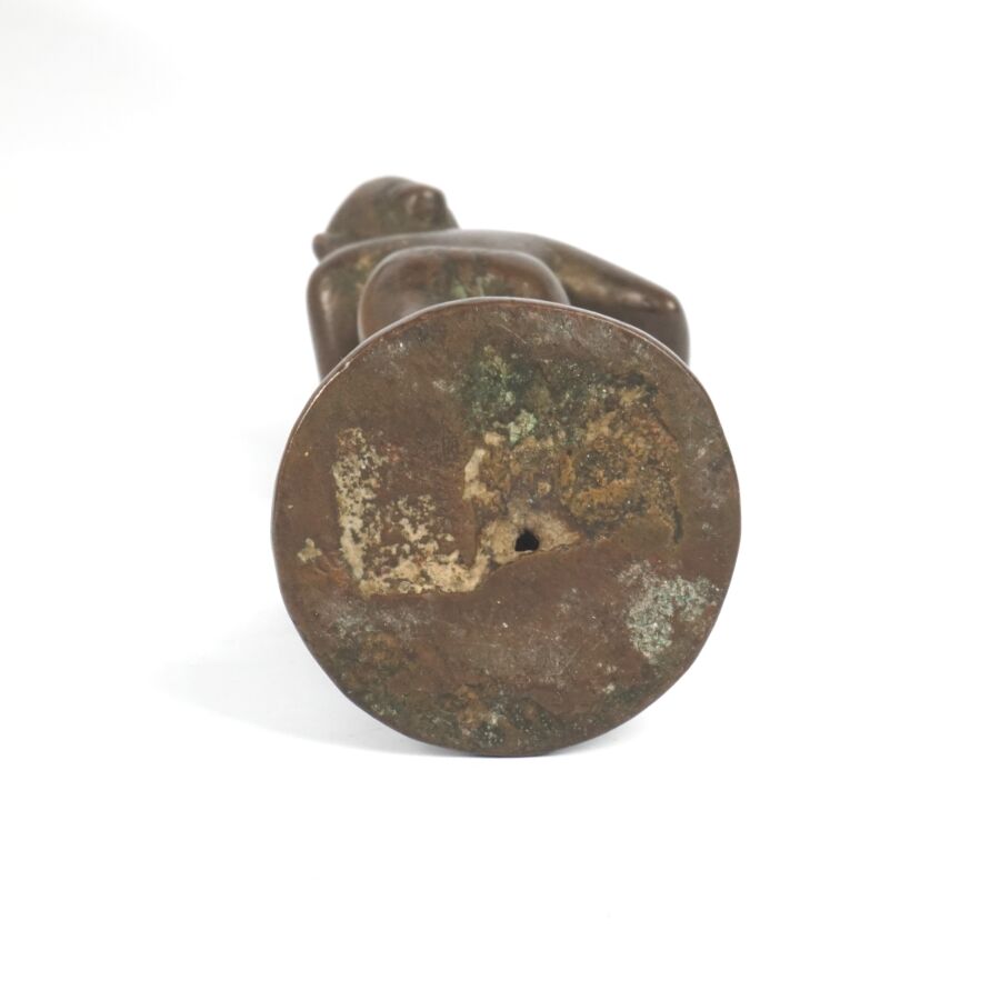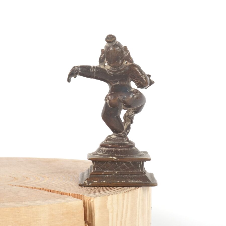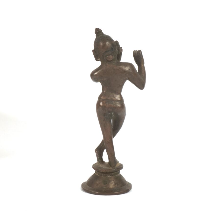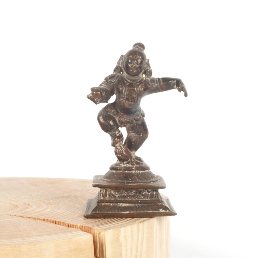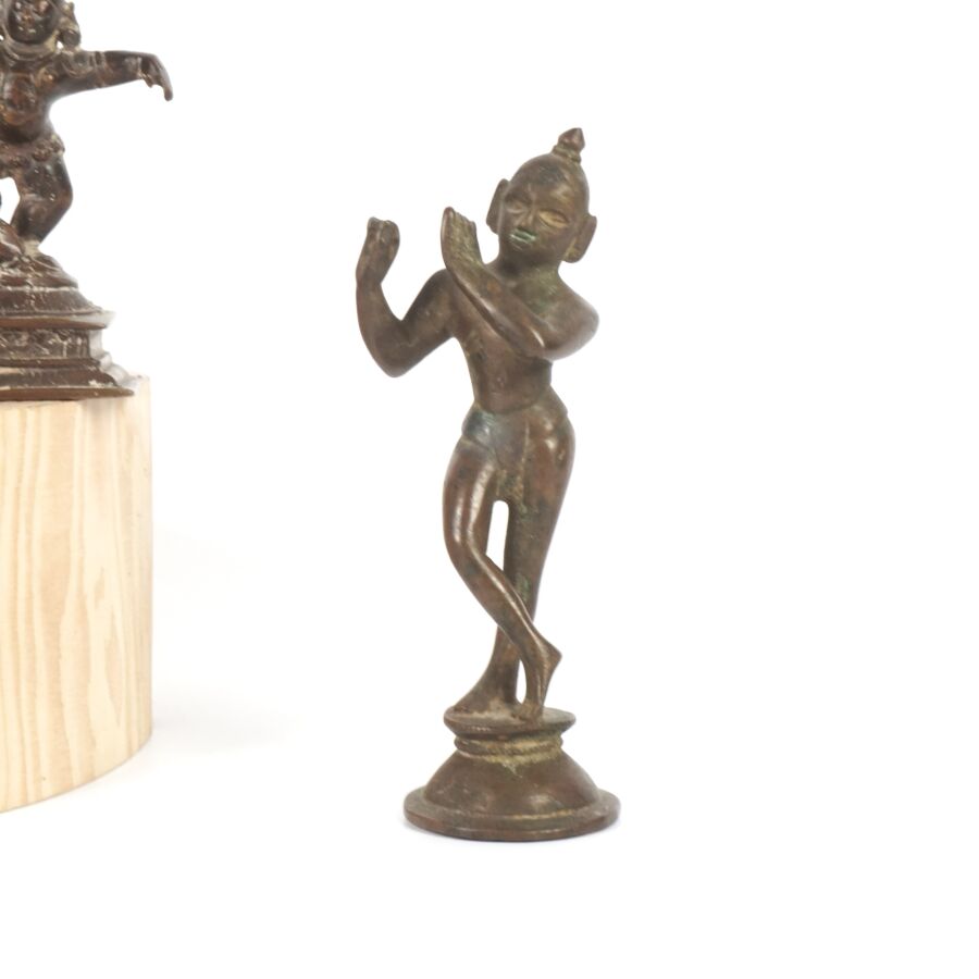 Deux statuettes en bronze à patine brune figurant Krishna enfant, Inde, fin du 18ème (pour l'un) et 19ème siècle (pour le second), H. 9 cm et 12 cm.