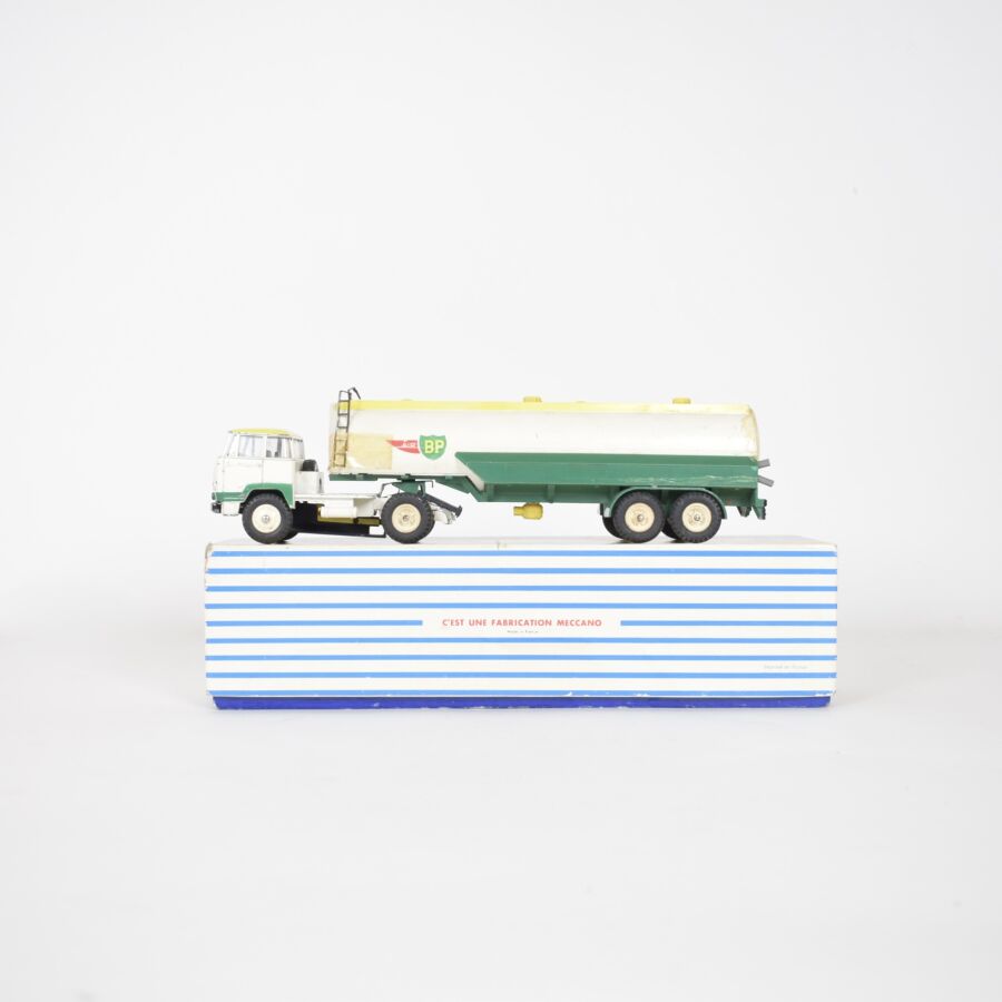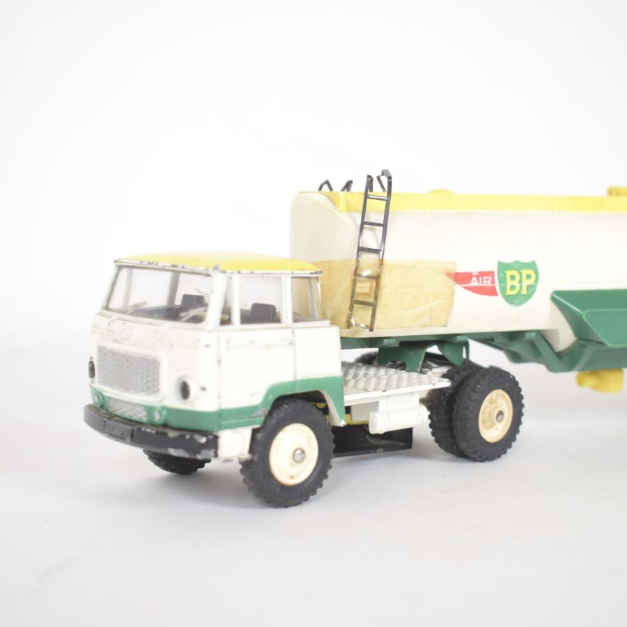 DINKY SUPER TOYS : Tracteur "UNIC" avec semi-remorque "Air BP", réf. 887, échelle 1/43ème, accompagné de sa boîte d'origine et sa notice. (manque de peinture, taches, éclats, oxydation, accidents aux petites échelles)