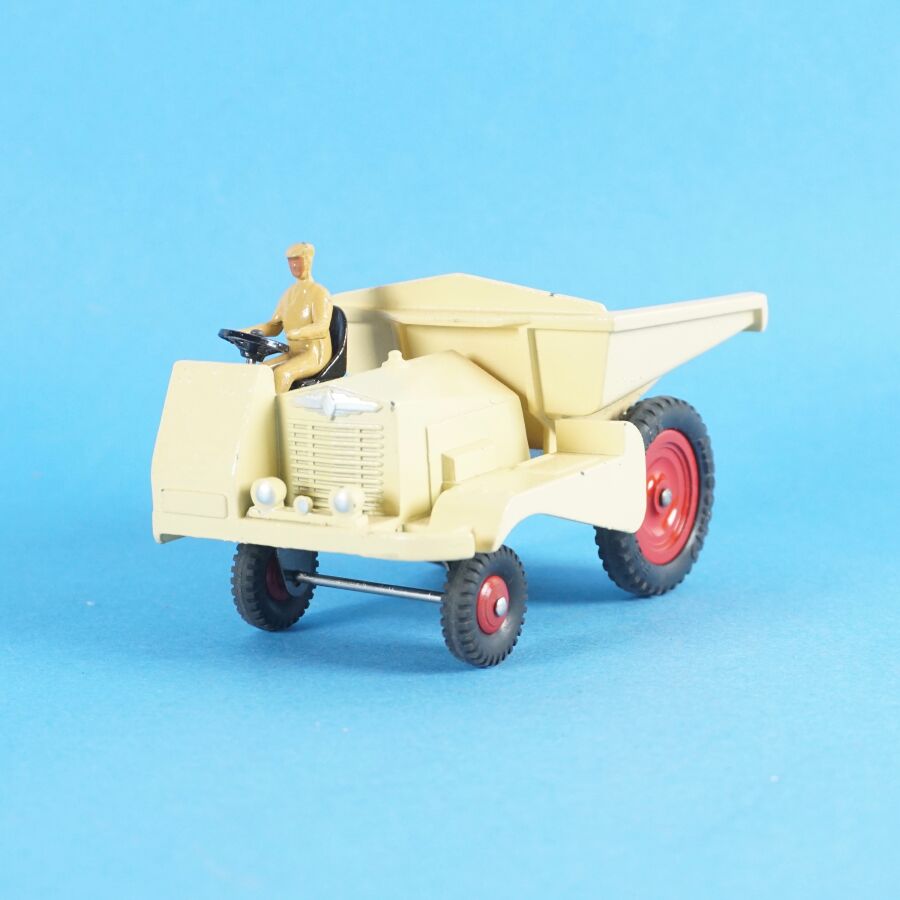 DINKY SUPERTOYS : Basculeur automoteur "Dumper", réf. 887, échelle 1/43ème, couleur jaune pâle, avec son conducteur, dans sa boîte d'origine (usure de la boîte et infimes écaillures de la peinture).