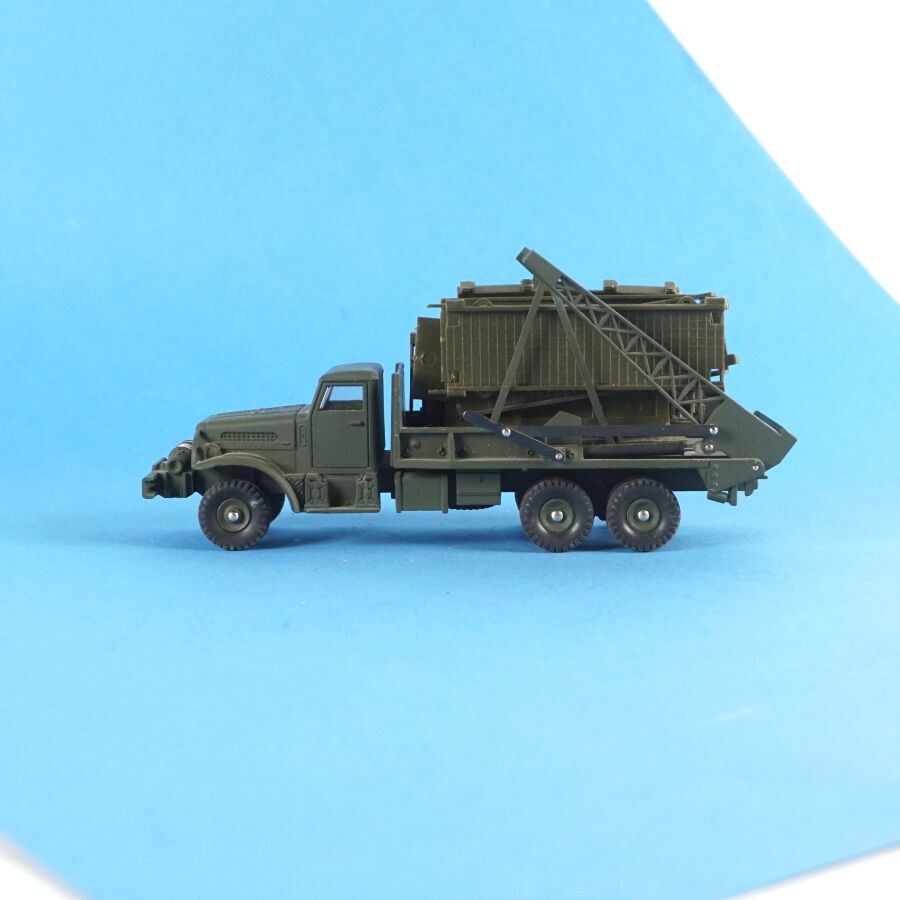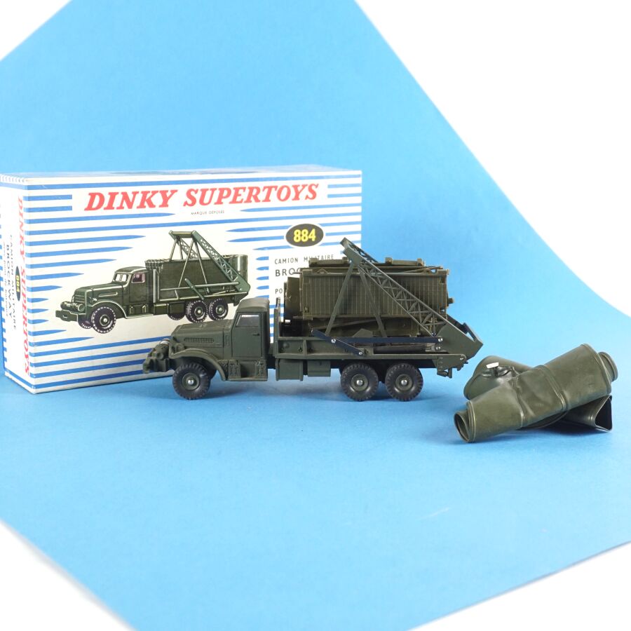 DINKY SUPERTOYS : Camion militaire "Brockway", réf. 884, avec pont de bateaux, dans sa boîte d'origine (usures et déchirures à la boîte).