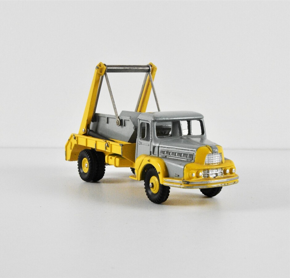 DINKY SUPERTOYS : Camion Unic multibenne MARREL, réf. 38A, gris et jaune, benne amovible, L. 13cm, dans sa boîte d'origine (taches).