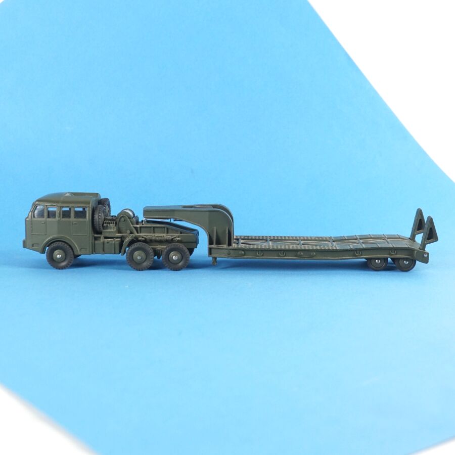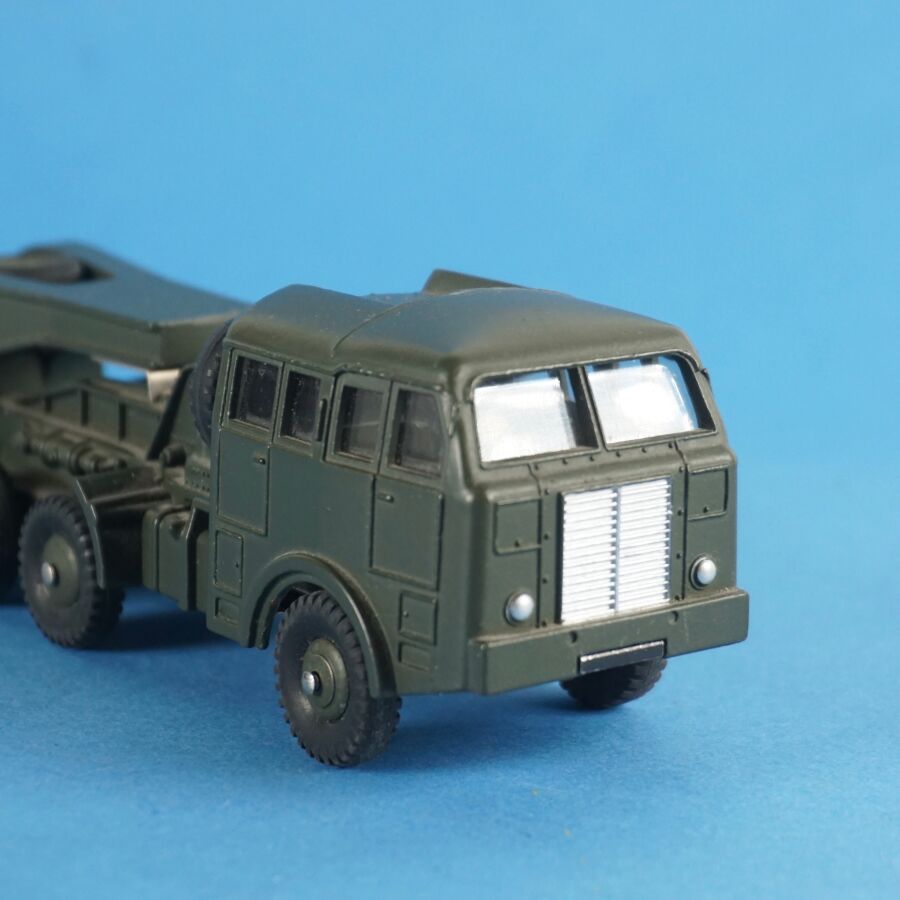 DINKY SUPERTOYS : Tracteur Berliet (avec glaces) et semi-remorque porte-char, réf.890, présenté dans sa boîte d'origine (usures à la boîte).